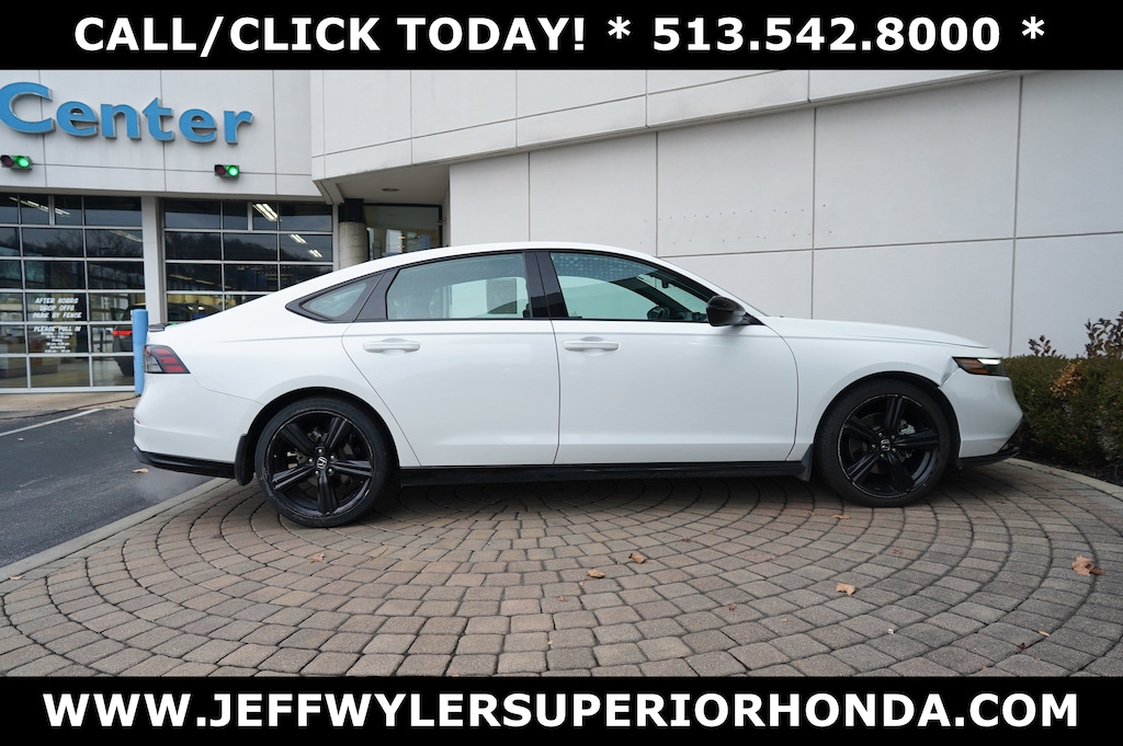 Jeff Wyler Superior Honda is proud to offer this charming 2023 Honda Accord Hybrid Sport-L in Platinum White Pearl. BLUETOOTH, LEATHER, MOONROOF SUNROOF, CLEAN CARFAX...NO ACCIDENTS, HONDA CERTIFIED!, And ONE OWNER Accord Hybrid Sport-L, HondaTrue Certified Certified, 4D Sedan, 2.0L 16V DOHC, eCVT, FWD, Platinum White Pearl, Black Leather, 4-Wheel Disc Brakes, 8 Speakers, ABS brakes, Adaptive Cruise Control: Adaptive Cruise Control (ACC) with Low-Speed Follow, Air Conditioning, Alloy wheels, AM/FM radio, Apple CarPlay/Android Auto, Auto High-beam Headlights, Automatic temperature control, Brake assist, Bumpers: body-color, Compass, Delay-off headlights, Driver door bin, Driver vanity mirror, Dual front impact airbags, Dual front side impact airbags, Electronic Stability Control, Emergency communication system: HondaLink, Exterior Parking Cameras, Four wheel independent suspension, Front anti-roll bar, Front Bucket Seats, Front Center Armrest, Front dual zone A/C, Front reading lights, Fully automatic headlights, Heated Front Bucket Seats, Heated front seats, Illuminated entry, Knee airbag, Lane departure: Lane Keeping Assist System (LKAS) active, Leather Shift Knob, Leather steering wheel, Leather-Trimmed Seat Trim, Low tire pressure warning, Memory seat, Occupant sensing airbag, Outside temperature display, Overhead airbag, Overhead console, Panic alarm, Passenger door bin, Passenger vanity mirror, Power door mirrors, Power driver seat, Power moonroof, Power passenger seat, Power steering, Power windows, Radio data system, Radio: 180-Watt Audio System, Rear anti-roll bar, Rear reading lights, Rear seat center armrest, Rear side impact airbag, Rear window defroster, Remote keyless entry, Security system, Speed control, Speed-sensing steering, Speed-Sensitive Wipers, Split folding rear seat, Spoiler, Steering wheel mounted audio controls, Telescoping steering wheel, Tilt steering wheel, Traction control, Trip computer, Variably intermittent wipers, and Wheels: 19" x 8.5J Matte Berlina Black Our PRE-OWNED vehicles are put through a rigorous 167- POINT QUALITY ASSURANCE INSPECTION along with an average amount of over $1,400.00 SPENT to recondition each vehicle so we can be sure to deliver you the highest quality vehicle like you deserve! ***ONLINE PRICE DOES NOT INCLUDE WYLER FAMILY FIRST PACKAGE*** Stop by 4777 Spring Grove Ave. Road to see for yourself, or give us a call @ 283-209-1858 to schedule your test drive!