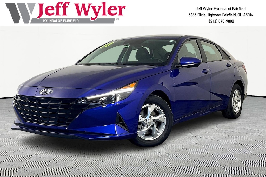CARFAX One-Owner. Clean CARFAX. Jeff Wyler Hyundai of Fairfield is pleased to offer this handsome 2023 Hyundai Elantra SE in Intense Blue. Well equipped with: Option Group 01, Hyundai Certified Used Vehicles Certified, Android Auto, Apple CarPlay, CALL NOW FOR YOUR VIP APPOINTMENT 513-870-9800, FULLY SERVICED w/RECORDS, GUARANTEED FINANCING!! NO MATTER YOUR SITUATION WE CAN GET AN APPROVAL!!, THE #1 Volume dealer in the region! Come see why for yourself Today!!, WE PAY MORE FOR YOUR TRADE!!, 15" x 6.0J Alloy Wheels, 4 Speakers, 4-Wheel Disc Brakes, ABS brakes, Air Conditioning, Alloy wheels, AM/FM radio, Apple CarPlay & Android Auto, Auto High-beam Headlights, Brake assist, Bumpers: body-color, Cargo Net, Carpeted Floor Mats, Cloth Seat Trim, Delay-off headlights, Driver door bin, Driver vanity mirror, Dual front impact airbags, Dual front side impact airbags, Electronic Stability Control, Exterior Parking Camera Rear, Front anti-roll bar, Front Bucket Seats, Front Center Armrest, Front reading lights, Front wheel independent suspension, Fully automatic headlights, Illuminated entry, Lane Departure Warning System, Low tire pressure warning, Mudguards, Occupant sensing airbag, Outside temperature display, Overhead airbag, Overhead console, Panic alarm, Passenger door bin, Passenger vanity mirror, Power door mirrors, Power steering, Power windows, Radio: AM/FM/HD Display Audio, Rear Bumper Applique, Rear window defroster, Remote keyless entry, Security system, Speed control, Speed-sensing steering, Steering wheel mounted audio controls, Tachometer, Telescoping steering wheel, Tilt steering wheel, Traction control, Trip computer, and Variably intermittent wipers. Certified. Hyundai Certified Used Vehicles Details: * Roadside Assistance * Powertrain Limited Warranty: 120 Month/100,000 Mile (whichever comes first) from original in-service date * Limited Warranty: 60 Month/60,000 Mile (whichever comes first) from original in-service date * Includes 10-year/Unlimited Mileage Roadside Assistance with Rental Car and Trip Interruption Reimbursement; Please See Dealers for Specific Vehicle Eligibility Requirements. 10-Year/100,000 Mile Hybrid/EV Battery Warranty. 3-Months SiriusXM Trial Subscription. Complimentary 1 Year (Connected Care & Remote Pkgs). * Warranty Deductible: $50 * Vehicle History * 173+ Point InspectionTO CHECK ON THE AVAILABILITY OF THIS VEHICLE REACH OUT TO ONE OF OUR TEAM MEMBERS!! ALSO SHOP ONLINE AT https://www.jeffwylerhyundaioffairfield.com/ Proudly Serving: Cincinnati, Dayton, Columbus, Louisville, Lexington, Indianapolis, Hamilton, Florence, Alexandria, Beavercreek, Springdale, West Chester, Monroe, Fairfield, Kenwood, Newport and all of greater Cincinnati Ohio, Indiana, and Northern Kentucky.