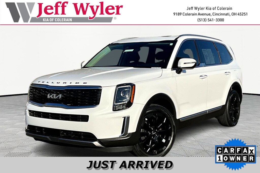 Jeff Wyler Kia of Colerain is excited to offer this fantastic 2022 Kia Telluride S in Glacial White Pearl. 20" x 7.5" Machined Alloy Wheels, 3.648 Axle Ratio, 3rd row seats: split-bench, 4-Wheel Disc Brakes, 6 Speakers, ABS brakes, Air Conditioning, Alloy wheels, AM/FM radio: SiriusXM, Apple CarPlay & Android Auto, Automatic temperature control, Brake assist, Bumpers: body-color, Carpeted Floor Mats, Delay-off headlights, Driver door bin, Driver vanity mirror, Dual front impact airbags, Dual front side impact airbags, EC Mirror w/Compass & HomeLink, Electronic Stability Control, Emergency communication system: 911 Connect, Four wheel independent suspension, Front anti-roll bar, Front Bucket Seats, Front Center Armrest, Front dual zone A/C, Front reading lights, Fully automatic headlights, Heated door mirrors, Heated Front Bucket Seats, Heated front seats, Illuminated entry, Knee airbag, Leather Shift Knob, Leather steering wheel, Low tire pressure warning, Navigation System, Occupant sensing airbag, Outside temperature display, Overhead airbag, Overhead console, Panic alarm, Passenger door bin, Passenger vanity mirror, Power door mirrors, Power driver seat, Power moonroof, Power steering, Power windows, Radio data system, Radio: AM/FM Display Audio System, Rear air conditioning, Rear anti-roll bar, Rear audio controls, Rear reading lights, Rear window defroster, Rear window wiper, Reclining 3rd row seat, Remote keyless entry, Roof rack: rails only, Security system, Smart Key w/ Push Button and Remote Start, Speed control, Speed-sensing steering, Split folding rear seat, Spoiler, Steering wheel mounted audio controls, Synthetic Leather Seat Trim, Tachometer, Telescoping steering wheel, Tilt steering wheel, Traction control, Trip computer, Turn signal indicator mirrors, and Variably intermittent wipers Our PRE-OWNED vehicles are put through a rigorous 167- POINT QUALITY ASSURANCE INSPECTION along with an average amount of over $1,400.00 SPENT to recondition each vehicle so we can be sure to deliver you the highest quality vehicle like you deserve! ***ONLINE PRICE DOES NOT INCLUDE WYLER FAMILY FIRST PACKAGE***