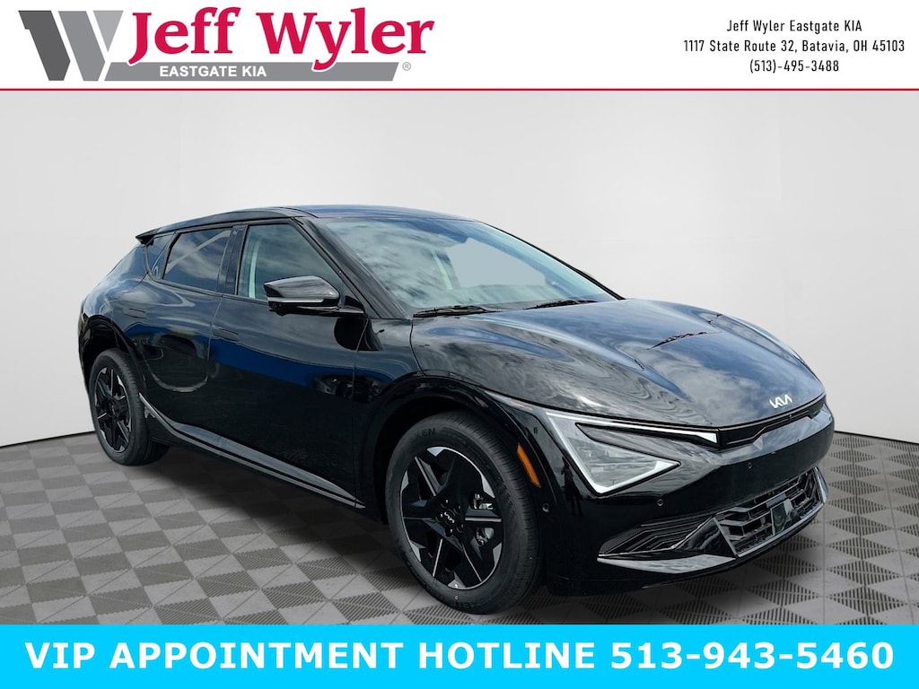 Priced below KBB Fair Purchase Price! Ebony Black 2025 Kia EV6 Wind Electric Motor AWD 1-Speed Automatic 117/95 City/Highway MPG Jeff Wyler Eastgate Auto Mall is delighted to offer this gorgeous 2025 Kia EV6 Wind in Ebony Black. Well equipped with: 4-Wheel Disc Brakes, 6 Speakers, ABS brakes, Air Conditioning, Alloy wheels, AM/FM radio: SiriusXM, Apple CarPlay & Android Auto, Auto High-beam Headlights, Auto-dimming Rear-View mirror, Automatic temperature control, Brake assist, Bumpers: body-color, Cargo Cover, Carpeted Floor Mats, Delay-off headlights, Driver door bin, Driver vanity mirror, Dual front impact airbags, Dual front side impact airbags, Electronic Stability Control, Emergency communication system, Four wheel independent suspension, Front anti-roll bar, Front Bucket Seats, Front Center Armrest, Front dual zone A/C, Front reading lights, Fully automatic headlights, Heated & Ventilated Front Seats (3-Stage), Heated door mirrors, Heated front seats, Heated rear seats, Heated steering wheel, Illuminated entry, Knee airbag, Low tire pressure warning, Memory seat, Navigation system: AVN 5.0 Navigation System, Occupant sensing airbag, Outside temperature display, Overhead airbag, Overhead console, Panic alarm, Passenger door bin, Passenger vanity mirror, Power door mirrors, Power driver seat, Power Liftgate, Power passenger seat, Power steering, Power windows, Radio: AM/FM/HD Radio/SiriusXM w/Navigation, Rain sensing wipers, Rear anti-roll bar, Rear seat center armrest, Rear side impact airbag, Rear window defroster, Remote keyless entry, Security system, Speed control, Speed-sensing steering, Split folding rear seat, Spoiler, Steering wheel mounted audio controls, Telescoping steering wheel, Tilt steering wheel, Traction control, Trip computer, Turn signal indicator mirrors, Variably intermittent wipers, Vegan Leather Seat Trim, Ventilated front seats, Wheel Locks, and Wheels: 7.5J x 19" Black Painted Alloy. 117/95 City/Highway MPG Price includes: $10000 - Kia Customer Cash. Exp. 03/02/2026 $1500 - Bonus Cash. Exp. 03/02/2026