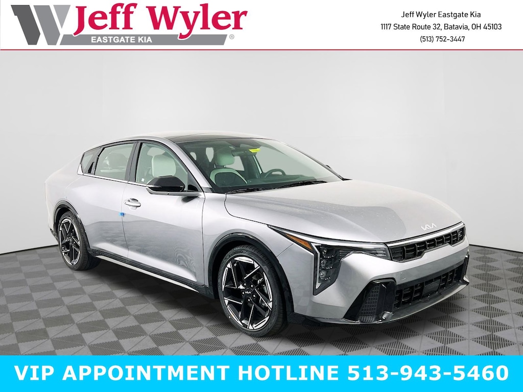 Steel Gray 2025 Kia K4 GT-Line 2.0L I4 MPI FWD CVT 29/39 City/Highway MPG Jeff Wyler Eastgate Auto Mall is proud to offer this charming 2025 Kia K4 GT-Line in Steel Gray. Well equipped with: GT-Line Premium Package (Acoustic Windshield, Driver's Seat & Outer-Mirrors Memory, harman/kardon Premium Audio, SynTex Seat Trim, and Ventilated Front Seats), GT-Line Sunroof Package (Wide Power Sunroof w/Power Sunshade), 4-Wheel Disc Brakes, 6 Speakers, ABS brakes, Air Conditioning, Alloy wheels, AM/FM radio: SiriusXM, Apple CarPlay & Android Auto, Auto High-beam Headlights, Automatic temperature control, Brake assist, Bumpers: body-color, Cloth/SynTex Seat Trim, Delay-off headlights, Driver door bin, Driver vanity mirror, Dual front impact airbags, Dual front side impact airbags, Electronic Stability Control, Four wheel independent suspension, Front anti-roll bar, Front Bucket Seats, Front Center Armrest, Front dual zone A/C, Front Heated Bucket Seats, Front reading lights, Fully automatic headlights, Heated door mirrors, Heated front seats, Illuminated entry, Low tire pressure warning, Navigation System, Occupant sensing airbag, Outside temperature display, Overhead airbag, Overhead console, Panic alarm, Passenger door bin, Passenger vanity mirror, Power door mirrors, Power driver seat, Power steering, Power windows, Radio data system, Radio: 12.3" Touchscreen Audio Display, Rear anti-roll bar, Rear seat center armrest, Rear side impact airbag, Rear window defroster, Remote keyless entry, Security system, Speed control, Split folding rear seat, Sport steering wheel, Steering wheel mounted audio controls, Tachometer, Telescoping steering wheel, Tilt steering wheel, Traction control, Trip computer, Turn signal indicator mirrors, Variably intermittent wipers, and Wheels: 18" x 8.0J Black Machined Alloy. 29/39 City/Highway MPG