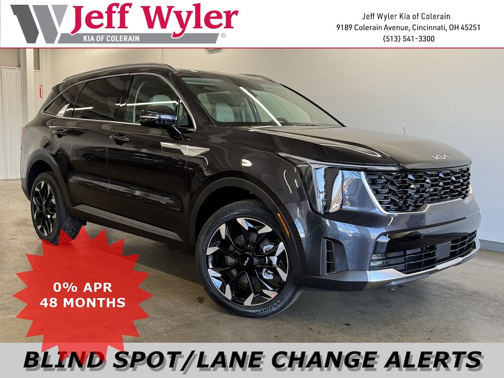 Jeff Wyler Kia of Colerain is pumped up to offer this beautiful 2025 Kia Sorento EX in Panthera Metal. Panoramic Sunroof Package (LED Interior Lighting and Panoramic Power Sunroof w/Power Sunshade), 3rd row seats: split-bench, 4-Wheel Disc Brakes, 6 Speakers, ABS brakes, Air Conditioning, Alloy wheels, AM/FM radio: SiriusXM, Apple CarPlay & Android Auto, Auto High-beam Headlights, Auto-dimming Rear-View mirror, Automatic temperature control, Brake assist, Bumpers: body-color, Delay-off headlights, Driver door bin, Driver vanity mirror, Dual front impact airbags, Dual front side impact airbags, Electronic Stability Control, Emergency communication system: 911 Connect, Exterior Parking Camera Rear, Four wheel independent suspension, Front anti-roll bar, Front Bucket Seats, Front Center Armrest, Front dual zone A/C, Front fog lights, Front reading lights, Fully automatic headlights, Heated door mirrors, Heated Front Bucket Seats, Heated front seats, Illuminated entry, Knee airbag, Leather Shift Knob, Leather steering wheel, Low tire pressure warning, Navigation System, Occupant sensing airbag, Outside temperature display, Overhead airbag, Overhead console, Panic alarm, Passenger door bin, Passenger vanity mirror, Power door mirrors, Power driver seat, Power Liftgate, Power passenger seat, Power steering, Power windows, Radio data system, Radio: AM/FM Standard Sound System, Rear anti-roll bar, Rear reading lights, Rear side impact airbag, Rear window defroster, Rear window wiper, Remote keyless entry, Security system, Speed control, Speed-sensing steering, Split folding rear seat, Spoiler, Steering wheel mounted audio controls, SynTex Artificial Leather Seat Trim, Tachometer, Telescoping steering wheel, Tilt steering wheel, Traction control, Trip computer, Turn signal indicator mirrors, Variably intermittent wipers, and Wheels: 20" Machine-Finished Gloss Black Alloy Our PRE-OWNED vehicles are put through a rigorous 167- POINT QUALITY ASSURANCE INSPECTION along with an average amount of over $1,400.00 SPENT to recondition each vehicle so we can be sure to deliver you the highest quality vehicle like you deserve! ***ONLINE PRICE DOES NOT INCLUDE WYLER FAMILY FIRST PACKAGE***