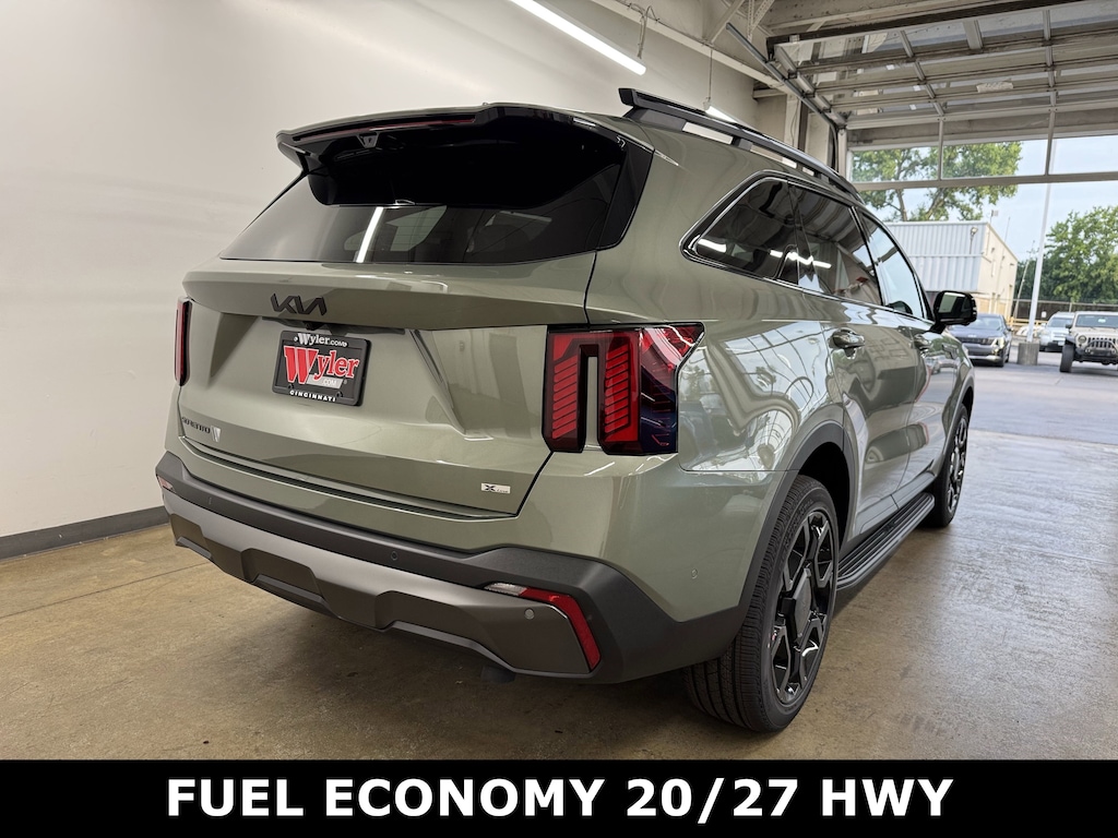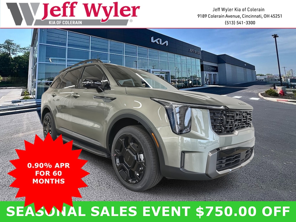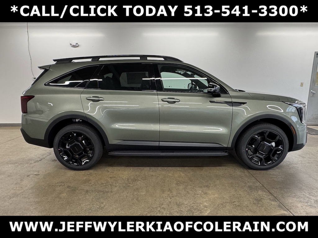 Jeff Wyler Kia of Colerain is proud to offer this fantastic-looking 2025 Kia Sorento X-Line SX Prestige in Jungle Green. Sage Leather Package, 12 Speakers, 3rd row seats: split-bench, 4-Wheel Disc Brakes, ABS brakes, Air Conditioning, Alloy wheels, AM/FM radio: SiriusXM, Apple CarPlay & Android Auto, Auto High-beam Headlights, Auto-dimming Rear-View mirror, Automatic temperature control, Black Side Step Bars, Brake assist, Bumpers: body-color, Cargo Net, Cargo Tray, Carpeted Floor Mats, Cross Bars X-Line, Delay-off headlights, Driver door bin, Driver vanity mirror, Dual front impact airbags, Dual front side impact airbags, Electronic Stability Control, Emergency communication system: 911 Connect, Exterior Parking Camera Rear, Four wheel independent suspension, Front anti-roll bar, Front Bucket Seats, Front Center Armrest, Front dual zone A/C, Front fog lights, Front reading lights, Fully automatic headlights, Garage door transmitter: HomeLink, Heated & Ventilated Front Bucket Seats, Heated door mirrors, Heated front seats, Heated rear seats, Heated steering wheel, Illuminated entry, Knee airbag, Leather Shift Knob, Leather steering wheel, Low tire pressure warning, Memory seat, Navigation System, Occupant sensing airbag, Outside temperature display, Overhead airbag, Overhead console, Panic alarm, Passenger door bin, Passenger vanity mirror, Perforated Genuine Leather Seat Trim, Power door mirrors, Power driver seat, Power Liftgate, Power moonroof, Power passenger seat, Power steering, Power windows, Radio data system, Radio: AM/FM Bose Premium Audio System, Rain sensing wipers, Rear anti-roll bar, Rear reading lights, Rear Seat Entertainment System, Rear side impact airbag, Rear window defroster, Rear window wiper, Remote keyless entry, Security system, Speed control, Speed-sensing steering, Split folding rear seat, Spoiler, Steering wheel mounted audio controls, Tachometer, Telescoping steering wheel, Tilt steering wheel, Traction control, Trip computer, Turn signal indicator mirrors, Variably intermittent wipers, Ventilated front seats, and Wheels: 20" Gloss Black X-Line Alloy Our PRE-OWNED vehicles are put through a rigorous 167- POINT QUALITY ASSURANCE INSPECTION along with an average amount of over $1,400.00 SPENT to recondition each vehicle so we can be sure to deliver you the highest quality vehicle like you deserve! ***ONLINE PRICE DOES NOT INCLUDE WYLER FAMILY FIRST PACKAGE*** Price includes: $750 - Sticker Sales Event Retail Bonus Cash. Exp. 12/01/2025