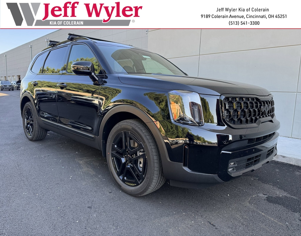 Jeff Wyler Kia of Colerain is delighted to offer this terrific-looking 2025 Kia Telluride SX-Prestige X-Line in Ebony Black. 10 Speakers, 3rd row seats: split-bench, 4-Wheel Disc Brakes, ABS brakes, Air Conditioning, All Weather Floor Mats, Alloy wheels, AM/FM radio: SiriusXM, Apple CarPlay & Android Auto, Auto High-beam Headlights, Auto-dimming Rear-View mirror, Auto-leveling suspension, Automatic temperature control, Brake assist, Bumpers: body-color, Compass, Cross Bars X-Line, Delay-off headlights, Driver door bin, Driver vanity mirror, Dual front impact airbags, Dual front side impact airbags, Electronic Stability Control, Emergency communication system: 911 Connect, Exterior Parking Camera Rear, Four wheel independent suspension, Front anti-roll bar, Front Bucket Seats, Front Center Armrest, Front dual zone A/C, Front fog lights, Front reading lights, Fully automatic headlights, Garage door transmitter: HomeLink, harman/kardon® Speakers, Heads-Up Display, Heated & Ventilated Front Bucket Seats, Heated door mirrors, Heated front seats, Heated rear seats, Heated steering wheel, Illuminated entry, Knee airbag, Leather Shift Knob, Leather steering wheel, Low tire pressure warning, Memory seat, Nappa Leather Seat Trim, Navigation System, Occupant sensing airbag, Outside temperature display, Overhead airbag, Overhead console, Panic alarm, Passenger door bin, Passenger vanity mirror, Power door mirrors, Power driver seat, Power Liftgate, Power moonroof, Power passenger seat, Power steering, Power windows, Radio data system, Radio: AM/FM Harman Kardon Audio System, Rain sensing wipers, Rear air conditioning, Rear anti-roll bar, Rear audio controls, Rear reading lights, Rear side impact airbag, Rear window defroster, Rear window wiper, Reclining 3rd row seat, Remote keyless entry, Security system, Speed control, Speed-sensing steering, Split folding rear seat, Spoiler, Steering wheel mounted audio controls, Tachometer, Telescoping steering wheel, Tilt steering wheel, Traction control, Trip computer, Turn signal indicator mirrors, Variably intermittent wipers, Ventilated front seats, Ventilated rear seats, and Wheels: 20" x 7.5" Black Finish X-LINE Exclusive Our PRE-OWNED vehicles are put through a rigorous 167- POINT QUALITY ASSURANCE INSPECTION along with an average amount of over $1,400.00 SPENT to recondition each vehicle so we can be sure to deliver you the highest quality vehicle like you deserve! ***ONLINE PRICE DOES NOT INCLUDE WYLER FAMILY FIRST PACKAGE***