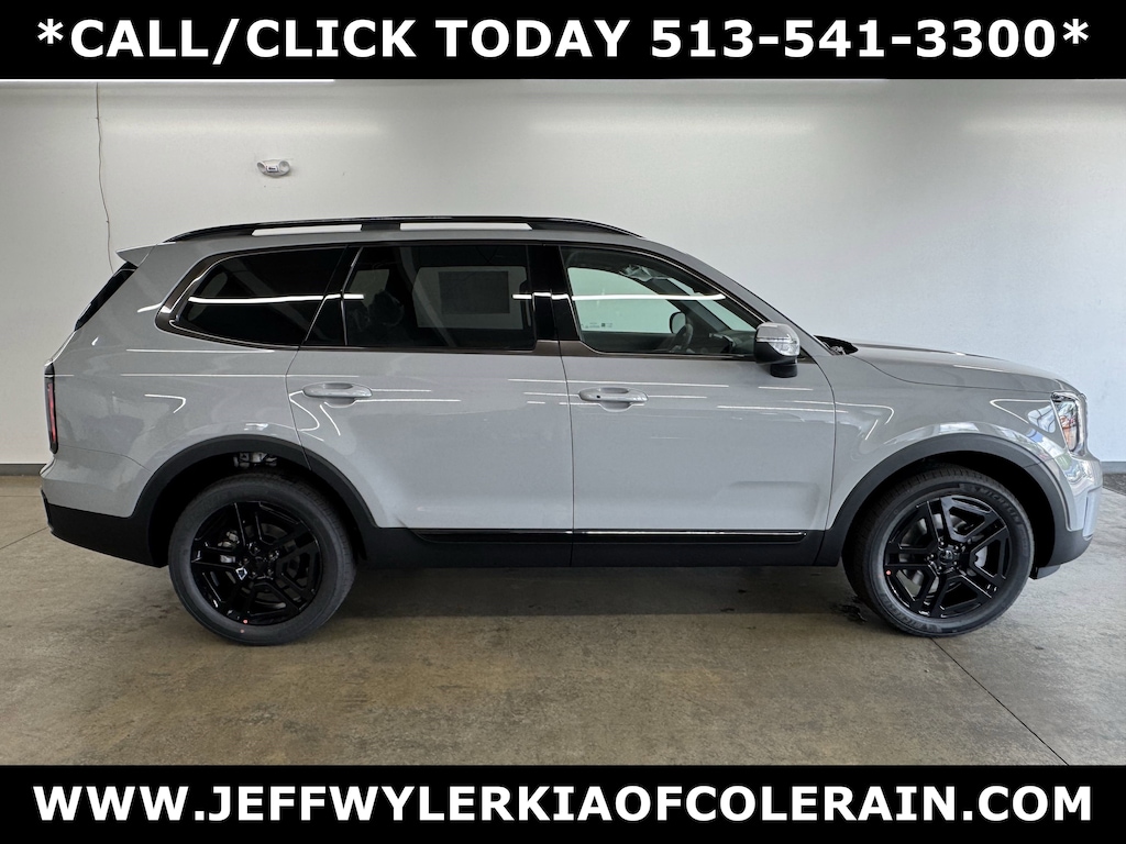 Jeff Wyler Kia of Colerain is delighted to offer this charming 2025 Kia Telluride EX X-Line in Wolf Gray. 3rd row seats: split-bench, 4-Wheel Disc Brakes, 6 Speakers, ABS brakes, Air Conditioning, Alloy wheels, AM/FM radio: SiriusXM, Apple CarPlay & Android Auto, Auto High-beam Headlights, Auto-dimming Rear-View mirror, Auto-leveling suspension, Automatic temperature control, Brake assist, Bumpers: body-color, Compass, Delay-off headlights, Driver door bin, Driver vanity mirror, Dual front impact airbags, Dual front side impact airbags, Electronic Stability Control, Emergency communication system: 911 Connect, Exterior Parking Camera Rear, Four wheel independent suspension, Front anti-roll bar, Front Bucket Seats, Front Center Armrest, Front dual zone A/C, Front reading lights, Fully automatic headlights, Heated & Ventilated Front Bucket Seats, Heated door mirrors, Heated front seats, Heated steering wheel, Illuminated entry, Knee airbag, Leather Seat Trim, Leather Shift Knob, Leather steering wheel, Low tire pressure warning, Navigation System, Occupant sensing airbag, Outside temperature display, Overhead airbag, Overhead console, Panic alarm, Passenger door bin, Passenger vanity mirror, Power door mirrors, Power driver seat, Power Liftgate, Power moonroof, Power passenger seat, Power steering, Power windows, Radio data system, Radio: AM/FM Display Audio System, Rear air conditioning, Rear anti-roll bar, Rear audio controls, Rear reading lights, Rear side impact airbag, Rear window defroster, Rear window wiper, Reclining 3rd row seat, Remote keyless entry, Security system, Speed control, Speed-sensing steering, Split folding rear seat, Spoiler, Steering wheel mounted audio controls, Tachometer, Telescoping steering wheel, Tilt steering wheel, Traction control, Trip computer, Turn signal indicator mirrors, Variably intermittent wipers, Ventilated front seats, and Wheels: 20" x 7.5" Black Finish X-LINE Exclusive Our PRE-OWNED vehicles are put through a rigorous 167- POINT QUALITY ASSURANCE INSPECTION along with an average amount of over $1,400.00 SPENT to recondition each vehicle so we can be sure to deliver you the highest quality vehicle like you deserve! ***ONLINE PRICE DOES NOT INCLUDE WYLER FAMILY FIRST PACKAGE***