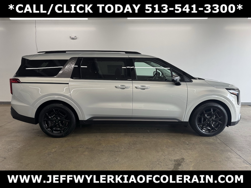 Jeff Wyler Kia of Colerain is proud to offer this beautiful-looking 2026 Kia Carnival SX in Ivory Silver. SX Dark Edition Package (Wheels: 7.5J x 19" Alloy Dark Edition), 3.51 Axle Ratio, 3rd row seats: split-bench, 4-Wheel Disc Brakes, 8 Speakers, ABS brakes, Air Conditioning, Alloy wheels, AM/FM radio: SiriusXM, Apple CarPlay & Android Auto, Artificial Leather Seat Trim, Auto High-beam Headlights, Auto-Dimming Mirror w/HomeLink, Automatic temperature control, Brake assist, Bumpers: body-color, Cargo Net, Cargo Tray, Carpeted Floor Mats (8-Passenger), Compass, Cross Bars, Dark Edition Front Grille Trim, Dark Edition Mirror Caps, Delay-off headlights, Driver door bin, Driver vanity mirror, Dual front impact airbags, Dual front side impact airbags, Electronic Stability Control, Emergency communication system, Exterior Parking Camera Rear, Four wheel independent suspension, Front anti-roll bar, Front Bucket Seats, Front Center Armrest, Front dual zone A/C, Front fog lights, Front reading lights, Fully automatic headlights, Heated & Ventilated Front Bucket Seats, Heated door mirrors, Heated front seats, Illuminated entry, Knee airbag, Leather Shift Knob, Leather steering wheel, Low tire pressure warning, Memory seat, Navigation System, Occupant sensing airbag, Outside temperature display, Overhead airbag, Overhead console, Panic alarm, Passenger door bin, Passenger vanity mirror, Power 2nd-Row Moonroof, Power door mirrors, Power driver seat, Power Liftgate, Power moonroof, Power passenger seat, Power steering, Power windows, Radio: AM/FM/HD Audio System, Rain sensing wipers, Rear air conditioning, Rear anti-roll bar, Rear reading lights, Rear window defroster, Rear window wiper, Reclining 3rd row seat, Remote keyless entry, Security system, Speed control, Speed-sensing steering, Split folding rear seat, Spoiler, Steering wheel mounted audio controls, Tachometer, Telescoping steering wheel, Tilt steering wheel, Traction control, Trip computer, Turn signal indicator mirrors, Variably intermittent wipers, Ventilated front seats, and Wheels: 7.5J x 19" Black Alloy Our PRE-OWNED vehicles are put through a rigorous 167- POINT QUALITY ASSURANCE INSPECTION along with an average amount of over $1,400.00 SPENT to recondition each vehicle so we can be sure to deliver you the highest quality vehicle like you deserve! ***ONLINE PRICE DOES NOT INCLUDE WYLER FAMILY FIRST PACKAGE***