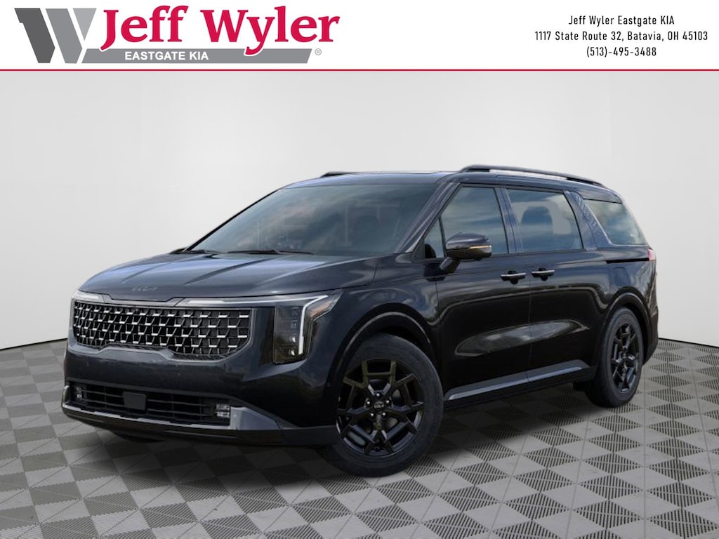Panthera Metal 2026 Kia Carnival Hybrid SX Prestige 1.6L I4 DGI Hybrid Turbocharged DOHC 16V LEV3-SULEV30 FWD 6-Speed Automatic 34/31 City/Highway MPG Jeff Wyler Eastgate Auto Mall is pumped up to offer this superb-looking 2026 Kia Carnival Hybrid SX Prestige in Panthera Metal. Well equipped with: SX Prestige Seat Package (2nd Row Laminated Windows, Ambient Lighting, Heated/Ventilated 2nd Row Power VIP Lounge Seats, and High Glossy Interior Trim), 12 Speakers, 3rd row seats: split-bench, 4-Wheel Disc Brakes, ABS brakes, Air Conditioning, Alloy wheels, AM/FM radio: SiriusXM, Apple CarPlay & Android Auto, Auto High-beam Headlights, Auto-dimming Rear-View mirror, Automatic temperature control, Brake assist, Bumpers: body-color, Compass, Delay-off headlights, Driver door bin, Driver vanity mirror, Dual front impact airbags, Dual front side impact airbags, Electronic Stability Control, Emergency communication system, Exterior Parking Camera Rear, Four wheel independent suspension, Front anti-roll bar, Front Bucket Seats, Front Center Armrest, Front dual zone A/C, Front fog lights, Front reading lights, Fully automatic headlights, Garage door transmitter: HomeLink, Heads-Up Display, Heated & Ventilated Front Bucket Seats, Heated door mirrors, Heated front seats, Heated steering wheel, Illuminated entry, Knee airbag, Leather Seat Trim, Leather Shift Knob, Leather steering wheel, Low tire pressure warning, Memory seat, Navigation System, Occupant sensing airbag, Outside temperature display, Overhead airbag, Overhead console, Panic alarm, Passenger door bin, Passenger vanity mirror, Power 2nd-Row Moonroof, Power door mirrors, Power driver seat, Power Liftgate, Power moonroof, Power passenger seat, Power steering, Power windows, Radio: Navigation System w/SiriusXM, Rain sensing wipers, Rear air conditioning, Rear anti-roll bar, Rear reading lights, Rear window defroster, Rear window wiper, Reclining 3rd row seat, Remote keyless entry, Security system, Speed control, Speed-sensing steering, Split folding rear seat, Spoiler, Steering wheel mounted audio controls, Tachometer, Telescoping steering wheel, Tilt steering wheel, Traction control, Trip computer, Turn signal indicator mirrors, Variably intermittent wipers, Ventilated front seats, and Wheels: 19" Black D-Cut Customizing. 34/31 City/Highway MPG