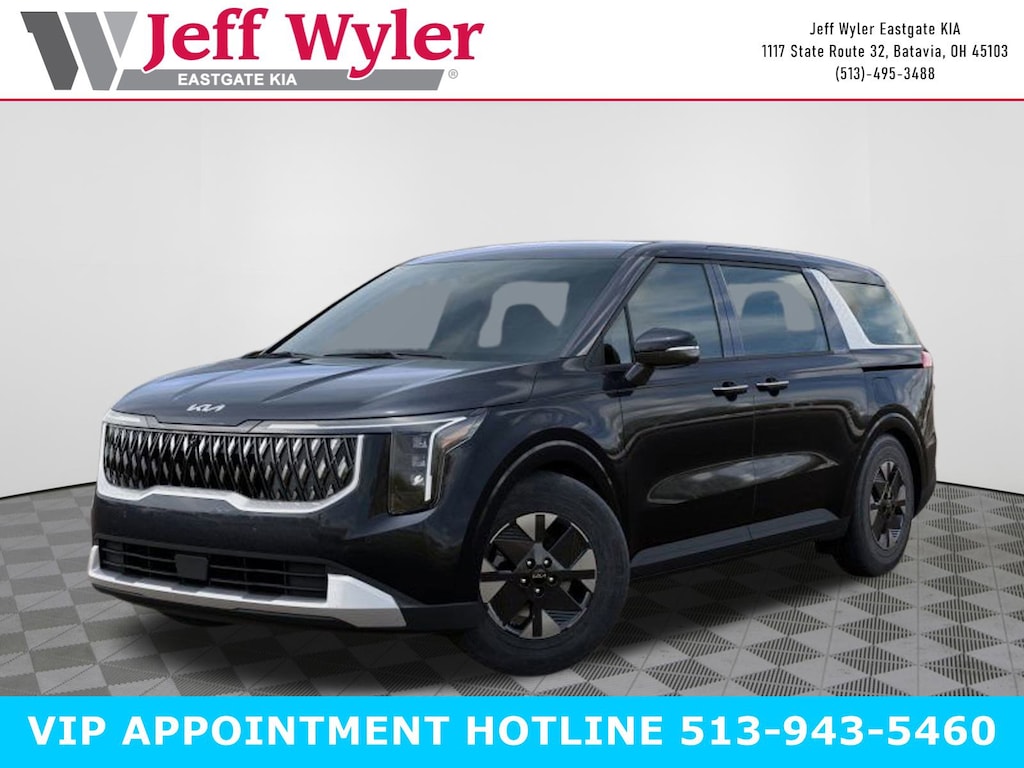 Panthera Metal 2026 Kia Carnival Hybrid LXS 1.6L I4 DGI Hybrid Turbocharged DOHC 16V LEV3-SULEV30 FWD 6-Speed Automatic 34/31 City/Highway MPG Jeff Wyler Eastgate Auto Mall is honored to offer this attractive 2026 Kia Carnival Hybrid LXS in Panthera Metal. Well equipped with: 17" Alloy Wheels, 3rd row seats: split-bench, 4-Wheel Disc Brakes, 6 Speakers, ABS brakes, Air Conditioning, All Weather Floor Mats (8-Passenger), Alloy wheels, AM/FM radio: SiriusXM, Apple CarPlay & Android Auto, Artificial Leather Seat Trim, Auto High-beam Headlights, Auto-Dimming Mirror w/HomeLink, Automatic temperature control, Brake assist, Bumpers: body-color, Compass, Delay-off headlights, Driver door bin, Driver vanity mirror, Dual front impact airbags, Dual front side impact airbags, Electronic Stability Control, Emergency communication system, Exterior Parking Camera Rear, Four wheel independent suspension, Front anti-roll bar, Front Bucket Seats, Front Center Armrest, Front dual zone A/C, Front reading lights, Fully automatic headlights, Heated door mirrors, Heated Front Bucket Seats, Heated front seats, Illuminated entry, Knee airbag, Leather Shift Knob, Leather steering wheel, Low tire pressure warning, Navigation System, Occupant sensing airbag, Outside temperature display, Overhead airbag, Overhead console, Panic alarm, Passenger door bin, Passenger vanity mirror, Power door mirrors, Power driver seat, Power steering, Power windows, Radio: Navigation System w/SiriusXM, Rear air conditioning, Rear anti-roll bar, Rear reading lights, Rear window defroster, Rear window wiper, Reclining 3rd row seat, Remote keyless entry, Security system, Speed control, Speed-sensing steering, Split folding rear seat, Spoiler, Steering wheel mounted audio controls, Tachometer, Telescoping steering wheel, Tilt steering wheel, Traction control, Trip computer, Turn signal indicator mirrors, and Variably intermittent wipers. 34/31 City/Highway MPG