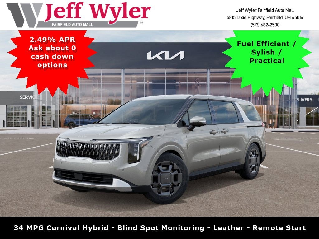 Scores 31 Highway MPG and 34 City MPG! This Kia Carnival Hybrid delivers a Intercooled Turbo Gas/Electric I-4 1.6 L/98 engine powering this Automatic transmission. NAVY/GRAY, ARTIFICIAL LEATHER SEAT TRIM, IVORY SILVER, CARPETED FLOOR MATS (8-PASSENGER).