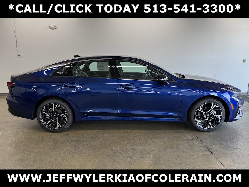 Jeff Wyler Kia of Colerain is very proud to offer this fantastic 2026 Kia K5 GT-Line in Yacht Blue. 4-Wheel Disc Brakes, 6 Speakers, ABS brakes, Air Conditioning, Alloy wheels, AM/FM radio: SiriusXM, Auto High-beam Headlights, Automatic temperature control, Brake assist, Bumpers: body-color, Delay-off headlights, Driver door bin, Driver vanity mirror, Dual front impact airbags, Dual front side impact airbags, Electronic Stability Control, Emergency communication system: Kia Connect (includes 1 year free trial), Four wheel independent suspension, Front anti-roll bar, Front Bucket Seats, Front Center Armrest, Front dual zone A/C, Front fog lights, Front reading lights, Fully automatic headlights, Heated door mirrors, Heated Front Bucket Seats, Heated front seats, Heated steering wheel, Illuminated entry, Knee airbag, Leather Shift Knob, Leather steering wheel, Low tire pressure warning, Navigation System, Occupant sensing airbag, Outside temperature display, Overhead airbag, Overhead console, Panic alarm, Passenger door bin, Passenger vanity mirror, Power door mirrors, Power driver seat, Power steering, Power windows, Radio data system, Radio: AM/FM Audio System, Rear anti-roll bar, Rear seat center armrest, Rear side impact airbag, Rear window defroster, Remote keyless entry, Security system, Speed control, Speed-sensing steering, Split folding rear seat, Sport steering wheel, Steering wheel mounted audio controls, Tachometer, Telescoping steering wheel, Tilt steering wheel, Traction control, Trip computer, Turn signal indicator mirrors, Variably intermittent wipers, and Wheels: 18" x 7.5J Gloss Black Machined Finish Alloy Our PRE-OWNED vehicles are put through a rigorous 167- POINT QUALITY ASSURANCE INSPECTION along with an average amount of over $1,400.00 SPENT to recondition each vehicle so we can be sure to deliver you the highest quality vehicle like you deserve! ***ONLINE PRICE DOES NOT INCLUDE WYLER FAMILY FIRST PACKAGE***