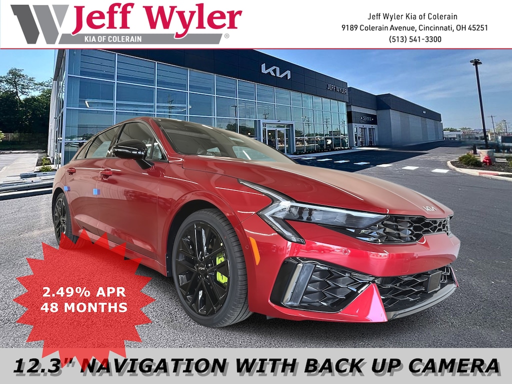 Jeff Wyler Kia of Colerain is very proud to offer this beautiful 2026 Kia K5 GT in Runway Red. GT1 Package (12.3" Instrument Display, 2-Position Memory Driver's Seat & Outside Mirrors, Active Sound Design, Auto Up/Down Front Passenger & Rear Windows, Blind-Spot View Monitor, Bose Premium Audio, Heated Steering Wheel, Parking Collision Avoidance-Assist - Reverse, Parking Distance Warning - Side, Power Folding Mirrors, Power Front Passenger Seat, Smartphone Digital Key, Surround View Monitor, Ventilated Front Seats, and Wheels: 19" x 8.0J Gloss Black Custom Alloy), 4-Wheel Disc Brakes, 6 Speakers, ABS brakes, Air Conditioning, Alloy wheels, AM/FM radio: SiriusXM, Auto High-beam Headlights, Automatic temperature control, Brake assist, Bumpers: body-color, Delay-off headlights, Driver door bin, Driver vanity mirror, Dual front impact airbags, Dual front side impact airbags, Electronic Stability Control, Emergency communication system: Kia Connect (includes 1 year free trial), Four wheel independent suspension, Front anti-roll bar, Front Bucket Seats, Front Center Armrest, Front dual zone A/C, Front fog lights, Front reading lights, Fully automatic headlights, Heated door mirrors, Heated front seats, Heated Sport Bucket Seats, Illuminated entry, Knee airbag, Leather Shift Knob, Leather steering wheel, Low tire pressure warning, Navigation System, Occupant sensing airbag, Outside temperature display, Overhead airbag, Overhead console, Panic alarm, Passenger door bin, Passenger vanity mirror, Power door mirrors, Power driver seat, Power moonroof, Power steering, Power windows, Radio data system, Radio: AM/FM Audio System, Rear anti-roll bar, Rear reading lights, Rear seat center armrest, Rear side impact airbag, Rear window defroster, Remote keyless entry, Security system, Speed control, Speed-sensing steering, Split folding rear seat, Sport steering wheel, Steering wheel mounted audio controls, SynTex Seat Trim, Tachometer, Telescoping steering wheel, Tilt steering wheel, Traction control, Trip computer, Turn signal indicator mirrors, Variably intermittent wipers, and Wheels: 19" x 8.0J Gloss Black Machined Finish Alloy Our PRE-OWNED vehicles are put through a rigorous 167- POINT QUALITY ASSURANCE INSPECTION along with an average amount of over $1,400.00 SPENT to recondition each vehicle so we can be sure to deliver you the highest quality vehicle like you deserve! ***ONLINE PRICE DOES NOT INCLUDE WYLER FAMILY FIRST PACKAGE***