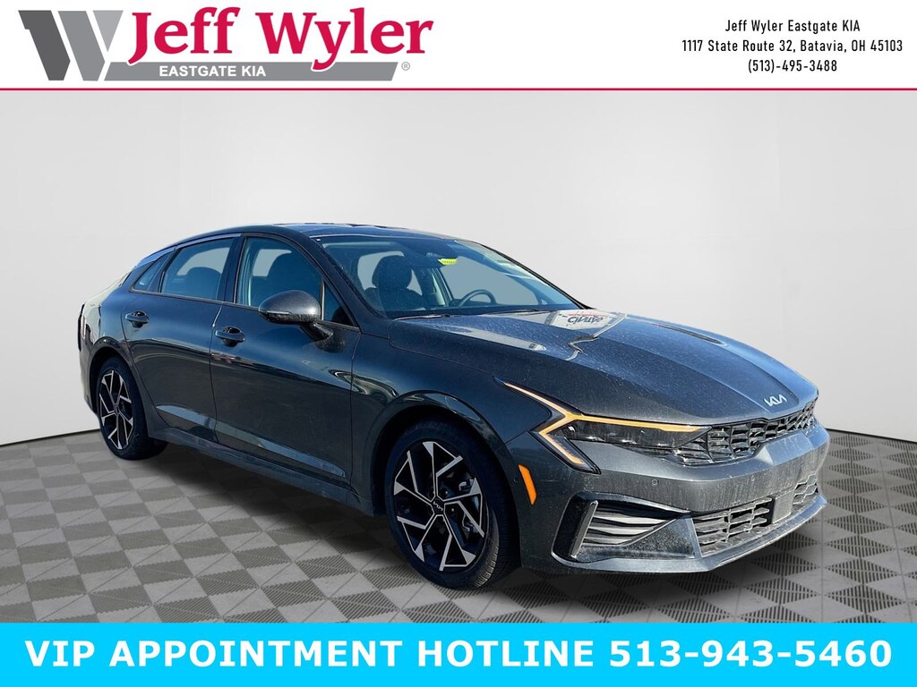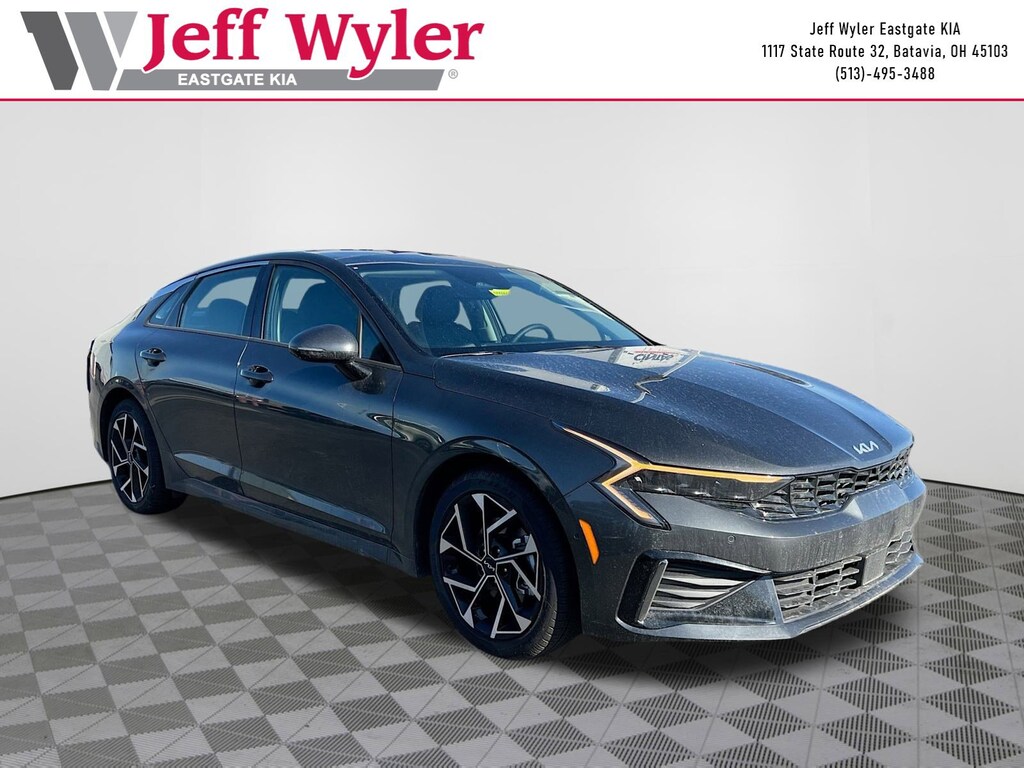 Interstellar Gray 2026 Kia K5 EX I4 FWD 8-Speed Automatic 25/36 City/Highway MPG Jeff Wyler Eastgate Auto Mall is honored to offer this attractive-looking 2026 Kia K5 EX in Interstellar Gray. Well equipped with: 12 Speakers, 4-Wheel Disc Brakes, ABS brakes, Air Conditioning, Alloy wheels, AM/FM radio: SiriusXM, Auto High-beam Headlights, Automatic temperature control, Brake assist, Bumpers: body-color, Delay-off headlights, Driver door bin, Driver vanity mirror, Dual front impact airbags, Dual front side impact airbags, Electronic Stability Control, Emergency communication system: Kia Connect (includes 1 year free trial), Four wheel independent suspension, Front anti-roll bar, Front Bucket Seats, Front Center Armrest, Front dual zone A/C, Front reading lights, Fully automatic headlights, Heated and Ventilated Front Bucket Seats, Heated door mirrors, Heated front seats, Heated steering wheel, Illuminated entry, Knee airbag, Leather Shift Knob, Leather steering wheel, Low tire pressure warning, Memory seat, Navigation System, Occupant sensing airbag, Outside temperature display, Overhead airbag, Overhead console, Panic alarm, Passenger door bin, Passenger vanity mirror, Power door mirrors, Power driver seat, Power moonroof, Power passenger seat, Power steering, Power windows, Radio data system, Radio: AM/FM Audio System, Rear anti-roll bar, Rear reading lights, Rear seat center armrest, Rear side impact airbag, Rear window defroster, Remote keyless entry, Security system, Speed control, Speed-sensing steering, Split folding rear seat, Steering wheel mounted audio controls, SynTex Seat Trim, Tachometer, Telescoping steering wheel, Tilt steering wheel, Traction control, Trip computer, Turn signal indicator mirrors, Variably intermittent wipers, Ventilated front seats, and Wheels: 18" x 7.5J Gloss Black Machined Finish Alloy. 25/36 City/Highway MPG