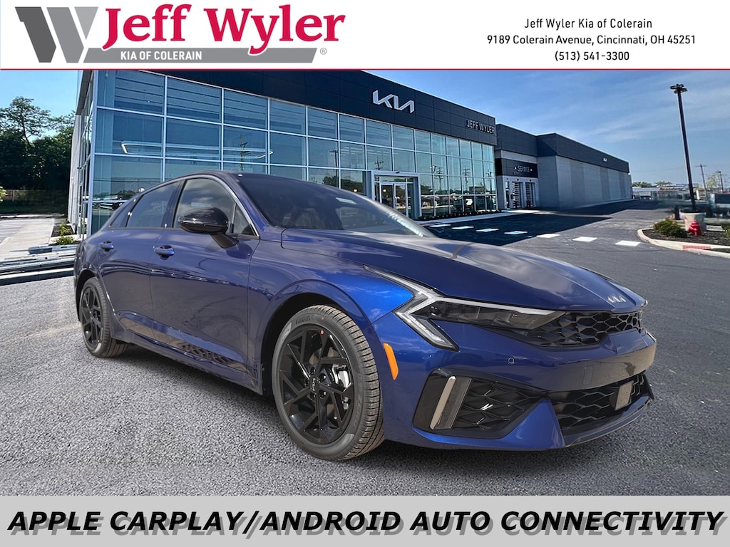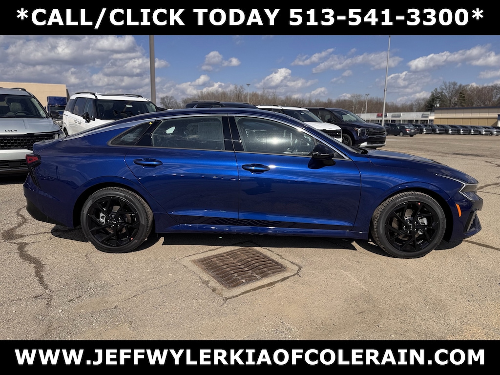 Jeff Wyler Kia of Colerain is very proud to offer this charming 2026 Kia K5 GT-Line in Yacht Blue. GT-Line Premium Package (Active Sound Design, Bose Premium Audio, LED Interior Lighting, Panoramic Sunroof, and Wheels: 18" x 7.5J Unique Gloss Black Alloy), 4-Wheel Disc Brakes, 6 Speakers, ABS brakes, Air Conditioning, Alloy wheels, AM/FM radio: SiriusXM, Apple CarPlay & Android Auto, Auto High-beam Headlights, Automatic temperature control, Brake assist, Bumpers: body-color, Carpeted Floor Mats, Delay-off headlights, Driver door bin, Driver vanity mirror, Dual front impact airbags, Dual front side impact airbags, Electronic Stability Control, Emergency communication system: Kia Connect (includes 1 year free trial), Four wheel independent suspension, Front anti-roll bar, Front Bucket Seats, Front Center Armrest, Front dual zone A/C, Front fog lights, Front reading lights, Fully automatic headlights, Heated door mirrors, Heated Front Bucket Seats, Heated front seats, Heated steering wheel, Illuminated entry, Knee airbag, Leather Shift Knob, Leather steering wheel, Low tire pressure warning, Navigation System, Occupant sensing airbag, Outside temperature display, Overhead airbag, Overhead console, Panic alarm, Passenger door bin, Passenger vanity mirror, Power door mirrors, Power driver seat, Power steering, Power windows, Radio data system, Radio: AM/FM Audio System, Rear anti-roll bar, Rear seat center armrest, Rear side impact airbag, Rear window defroster, Remote keyless entry, Security system, Speed control, Speed-sensing steering, Split folding rear seat, Sport steering wheel, Steering wheel mounted audio controls, Tachometer, Telescoping steering wheel, Tilt steering wheel, Traction control, Trip computer, Turn signal indicator mirrors, Variably intermittent wipers, and Wheels: 18" x 7.5J Gloss Black Machined Finish Alloy Our PRE-OWNED vehicles are put through a rigorous 167- POINT QUALITY ASSURANCE INSPECTION along with an average amount of over $1,400.00 SPENT to recondition each vehicle so we can be sure to deliver you the highest quality vehicle like you deserve! ***ONLINE PRICE DOES NOT INCLUDE WYLER FAMILY FIRST PACKAGE***