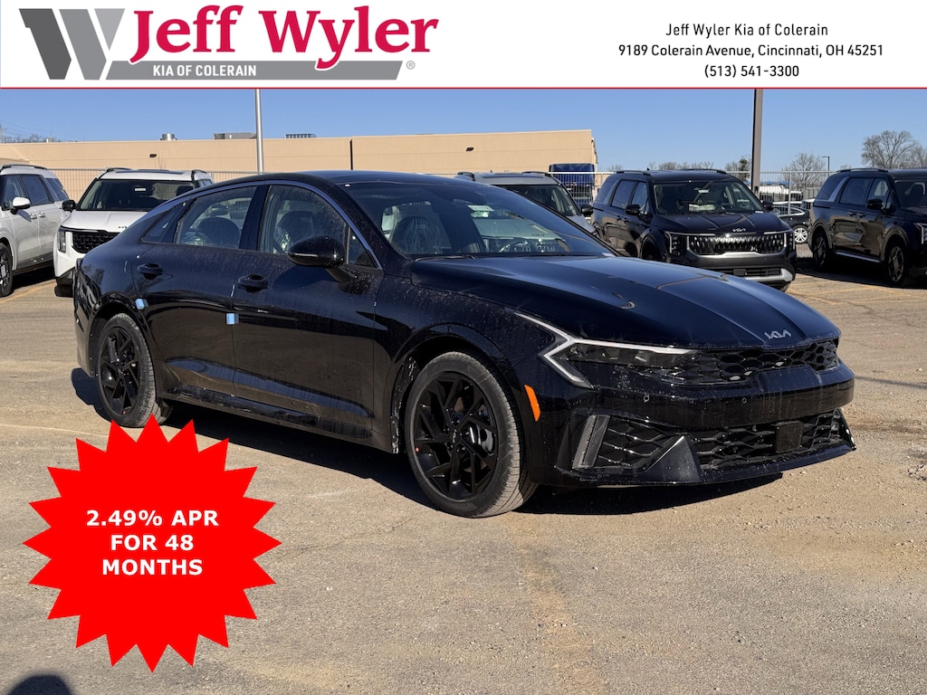 Jeff Wyler Kia of Colerain is honored to offer this superb-looking 2026 Kia K5 GT-Line in Aurora Black. 4-Wheel Disc Brakes, 6 Speakers, ABS brakes, Air Conditioning, Alloy wheels, AM/FM radio: SiriusXM, Auto High-beam Headlights, Automatic temperature control, Brake assist, Bumpers: body-color, Delay-off headlights, Driver door bin, Driver vanity mirror, Dual front impact airbags, Dual front side impact airbags, Electronic Stability Control, Emergency communication system: Kia Connect (includes 1 year free trial), Four wheel independent suspension, Front anti-roll bar, Front Bucket Seats, Front Center Armrest, Front dual zone A/C, Front fog lights, Front reading lights, Fully automatic headlights, Heated door mirrors, Heated Front Bucket Seats, Heated front seats, Heated steering wheel, Illuminated entry, Knee airbag, Leather Shift Knob, Leather steering wheel, Low tire pressure warning, Navigation System, Occupant sensing airbag, Outside temperature display, Overhead airbag, Overhead console, Panic alarm, Passenger door bin, Passenger vanity mirror, Power door mirrors, Power driver seat, Power steering, Power windows, Radio data system, Radio: AM/FM Audio System, Rear anti-roll bar, Rear seat center armrest, Rear side impact airbag, Rear window defroster, Remote keyless entry, Security system, Speed control, Speed-sensing steering, Split folding rear seat, Sport steering wheel, Steering wheel mounted audio controls, Tachometer, Telescoping steering wheel, Tilt steering wheel, Traction control, Trip computer, Turn signal indicator mirrors, Variably intermittent wipers, and Wheels: 18" x 7.5J Gloss Black Machined Finish Alloy Our PRE-OWNED vehicles are put through a rigorous 167- POINT QUALITY ASSURANCE INSPECTION along with an average amount of over $1,400.00 SPENT to recondition each vehicle so we can be sure to deliver you the highest quality vehicle like you deserve! ***ONLINE PRICE DOES NOT INCLUDE WYLER FAMILY FIRST PACKAGE***