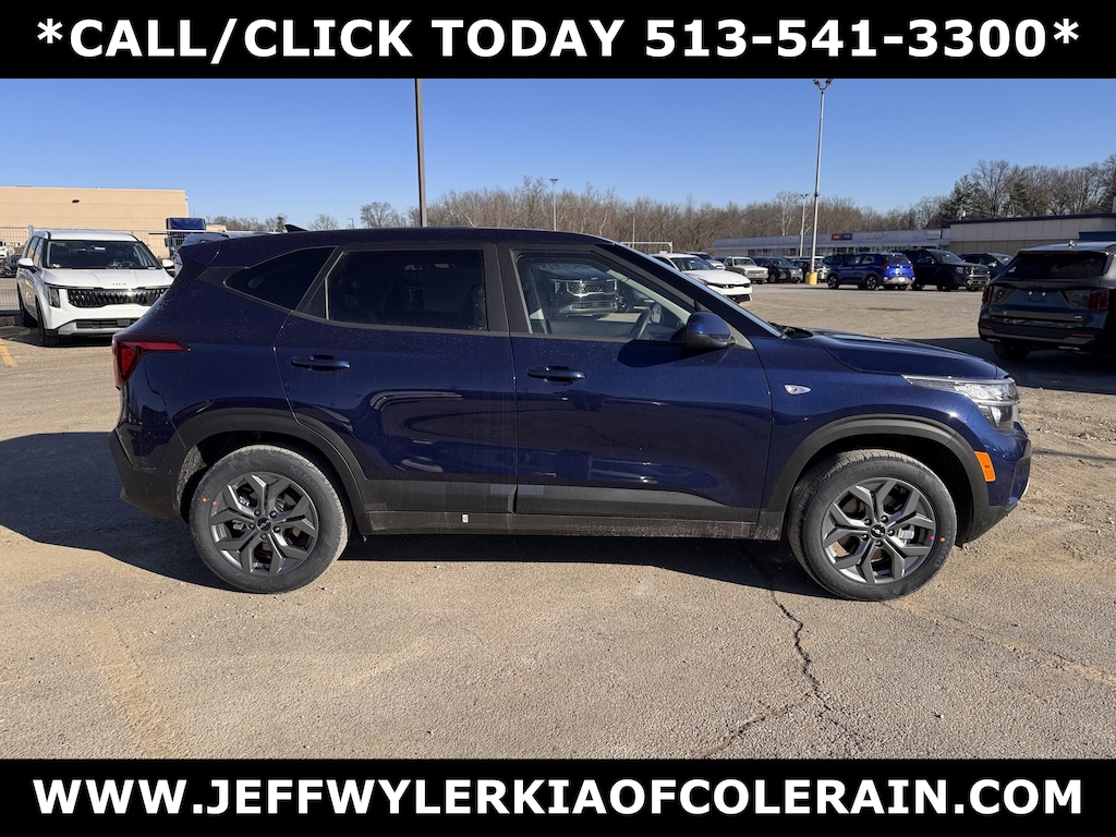 Jeff Wyler Kia of Colerain is pumped up to offer this gorgeous-looking 2026 Kia Seltos LX in Dark Ocean Blue. 4-Wheel Disc Brakes, 6 Speakers, ABS brakes, Air Conditioning, Alloy wheels, AM/FM radio, Apple CarPlay & Android Auto, Auto High-beam Headlights, Brake assist, Bumpers: body-color, Cloth Seat Trim, Delay-off headlights, Driver door bin, Driver vanity mirror, Dual front impact airbags, Dual front side impact airbags, Electronic Stability Control, Exterior Parking Camera Rear, Four wheel independent suspension, Front anti-roll bar, Front Bucket Seats, Front Center Armrest, Front reading lights, Fully automatic headlights, Illuminated entry, Low tire pressure warning, Occupant sensing airbag, Outside temperature display, Overhead airbag, Overhead console, Panic alarm, Passenger door bin, Passenger vanity mirror, Power door mirrors, Power steering, Power windows, Radio: AM/FM Display Audio System, Rear window defroster, Rear window wiper, Remote keyless entry, Security system, Speed control, Speed-sensing steering, Split folding rear seat, Spoiler, Steering wheel mounted audio controls, Tachometer, Telescoping steering wheel, Tilt steering wheel, Traction control, Trip computer, Variably intermittent wipers, and Wheels: 17" Alloy with Dark Gray Finish Our PRE-OWNED vehicles are put through a rigorous 167- POINT QUALITY ASSURANCE INSPECTION along with an average amount of over $1,400.00 SPENT to recondition each vehicle so we can be sure to deliver you the highest quality vehicle like you deserve! ***ONLINE PRICE DOES NOT INCLUDE WYLER FAMILY FIRST PACKAGE***