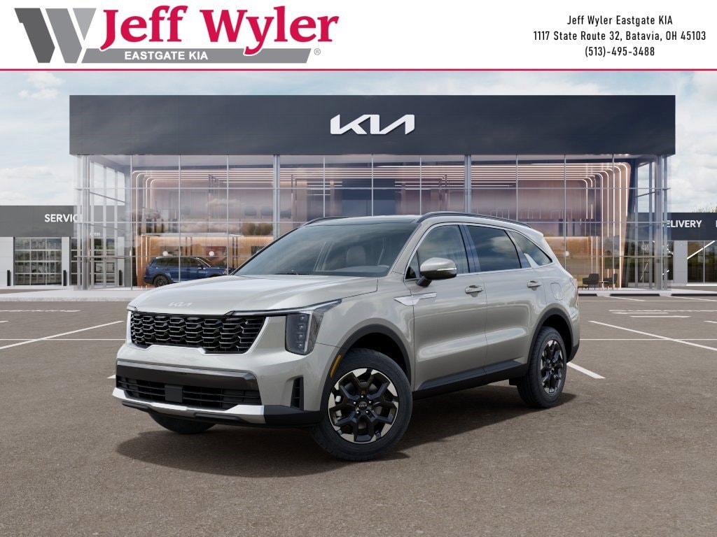 Priced below KBB Fair Purchase Price! Ivory 2026 Kia Sorento S 2.5L I4 DGI DOHC 16V LEV3-SULEV30 191hp AWD 8-Speed Automatic 23/28 City/Highway MPG Jeff Wyler Eastgate Auto Mall is very proud to offer this fantastic 2026 Kia Sorento S in Ivory. Well equipped with: S Panoramic Sunroof Package (Full-Length One-Touch Panoroof with Sliding Sunshade and LED Interior Lighting), 3rd row seats: split-bench, 4-Wheel Disc Brakes, 6 Speakers, ABS brakes, Air Conditioning, All Weather Floor Mats, Alloy wheels, AM/FM radio: SiriusXM, Apple CarPlay & Android Auto, Auto High-beam Headlights, Auto-Dimming Mirror with HomeLink, Automatic temperature control, Brake assist, Bumpers: body-color, Delay-off headlights, Driver door bin, Driver vanity mirror, Dual front impact airbags, Dual front side impact airbags, Electronic Stability Control, Emergency communication system: 911 Connect, Exterior Parking Camera Rear, Four wheel independent suspension, Front anti-roll bar, Front Bucket Seats, Front Center Armrest, Front dual zone A/C, Front reading lights, Fully automatic headlights, Heated door mirrors, Heated Front Bucket Seats, Heated front seats, Illuminated entry, Knee airbag, Leather Shift Knob, Leather steering wheel, Low tire pressure warning, Occupant sensing airbag, Outside temperature display, Overhead airbag, Overhead console, Panic alarm, Passenger door bin, Passenger vanity mirror, Power door mirrors, Power driver seat, Power steering, Power windows, Radio data system, Radio: AM/FM Standard Sound System, Rear anti-roll bar, Rear reading lights, Rear seat center armrest, Rear side impact airbag, Rear window defroster, Rear window wiper, Remote keyless entry, Security system, Speed control, Speed-sensing steering, Split folding rear seat, Spoiler, Steering wheel mounted audio controls, SynTex Artificial Leather Seat Trim, Tachometer, Telescoping steering wheel, Tilt steering wheel, Traction control, Trip computer, Turn signal indicator mirrors, Variably intermittent wipers, and Wheels: 18" Gloss Black Alloy. 23/28 City/Highway MPG Price includes: $2500 - Kia Customer Cash. Exp. 05/04/2026