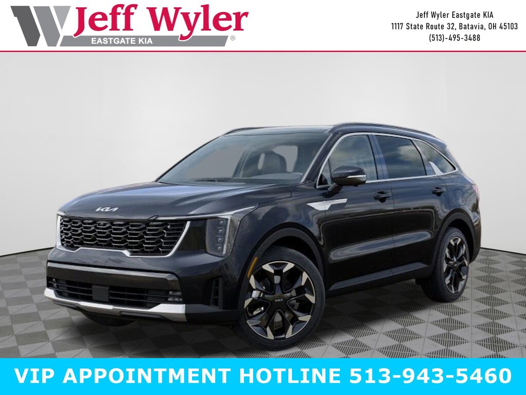 Priced below KBB Fair Purchase Price! Panthera Metal 2026 Kia Sorento SX 2.5L I4 DGI Turbocharged DOHC 16V LEV3-SULEV30 281hp FWD 8 Speed Dual Clutch 20/29 City/Highway MPG Jeff Wyler Eastgate Auto Mall is honored to offer this superb-looking 2026 Kia Sorento SX in Panthera Metal. Well equipped with: 12 Speakers, 3rd row seats: split-bench, 4-Wheel Disc Brakes, ABS brakes, Air Conditioning, Alloy wheels, AM/FM radio: SiriusXM, Apple CarPlay & Android Auto, Auto High-beam Headlights, Auto-dimming Rear-View mirror, Automatic temperature control, Brake assist, Bumpers: body-color, Cargo Cover, Carpeted Floor Mats, Delay-off headlights, Driver door bin, Driver vanity mirror, Dual front impact airbags, Dual front side impact airbags, Electronic Stability Control, Emergency communication system: 911 Connect, Exterior Parking Camera Rear, Four wheel independent suspension, Front anti-roll bar, Front Bucket Seats, Front Center Armrest, Front dual zone A/C, Front fog lights, Front reading lights, Fully automatic headlights, Garage door transmitter: HomeLink, Heated and Ventilated Front Bucket Seats, Heated door mirrors, Heated front seats, Heated steering wheel, Illuminated entry, Knee airbag, Leather Shift Knob, Leather steering wheel, Low tire pressure warning, Navigation System, Occupant sensing airbag, Outside temperature display, Overhead airbag, Overhead console, Panic alarm, Passenger door bin, Passenger vanity mirror, Power door mirrors, Power driver seat, Power Liftgate, Power moonroof, Power passenger seat, Power steering, Power windows, Radio data system, Radio: AM/FM Bose Premium Audio System, Rain sensing wipers, Rear anti-roll bar, Rear reading lights, Rear side impact airbag, Rear window defroster, Rear window wiper, Remote keyless entry, Roadside Assistance Kit, Security system, Speed control, Speed-sensing steering, Split folding rear seat, Spoiler, Steering wheel mounted audio controls, SynTex Artificial Leather Seat Trim, Tachometer, Telescoping steering wheel, Tilt steering wheel, Traction control, Trip computer, Turn signal indicator mirrors, Variably intermittent wipers, Ventilated front seats, and Wheels: 20" Machine-Finished Gloss Black Alloy. 20/29 City/Highway MPG Price includes: $2000 - Kia Customer Cash. Exp. 03/02/2026