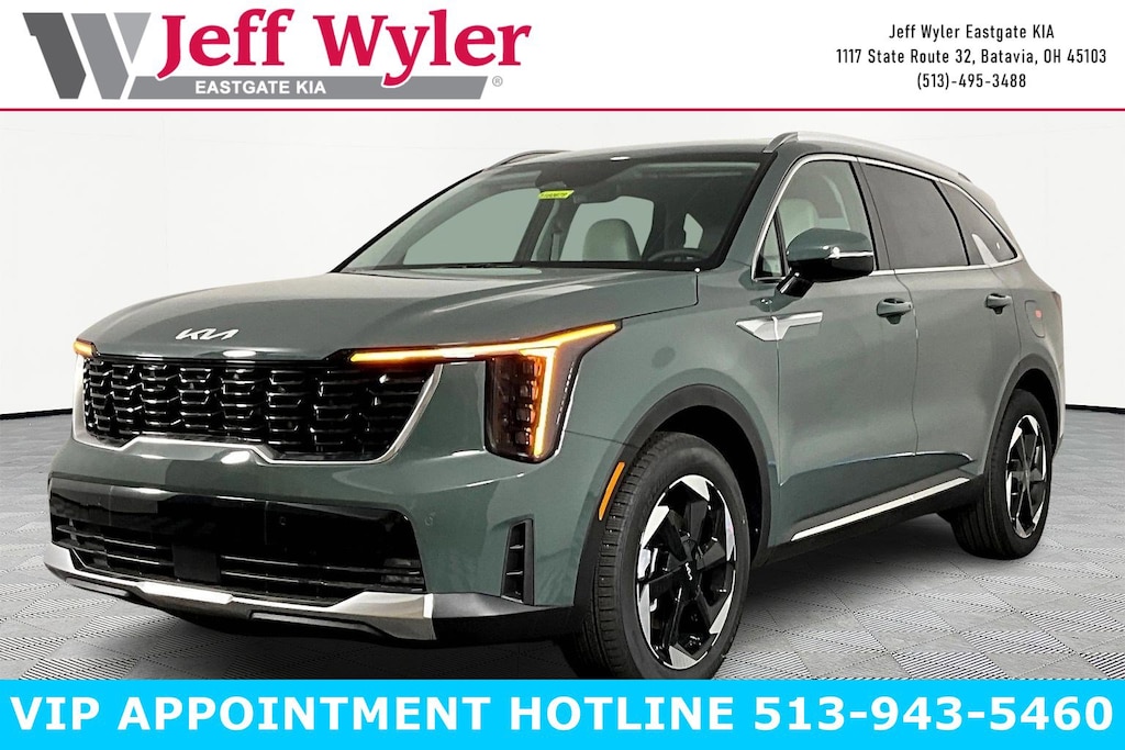 Priced below KBB Fair Purchase Price! Cityscape Green 2026 Kia Sorento Hybrid EX 1.6L Turbo GDI 4-Cylinder FWD 6-Speed Automatic 37/36 City/Highway MPG Jeff Wyler Eastgate Auto Mall is excited to offer this stunning-looking 2026 Kia Sorento Hybrid EX in Cityscape Green. Well equipped with: 3rd row seats: split-bench, 4-Wheel Disc Brakes, 6 Speakers, ABS brakes, Air Conditioning, All Weather Floor Mats, Alloy wheels, AM/FM radio: SiriusXM, Apple CarPlay & Android Auto, Auto High-beam Headlights, Auto-Dimming Mirror with HomeLink, Auto-dimming Rear-View mirror, Automatic temperature control, Brake assist, Bumpers: body-color, Delay-off headlights, Driver door bin, Driver vanity mirror, Dual front impact airbags, Dual front side impact airbags, Electronic Stability Control, Emergency communication system: 911 Connect, Exterior Parking Camera Rear, Four wheel independent suspension, Front anti-roll bar, Front Bucket Seats, Front Center Armrest, Front dual zone A/C, Front fog lights, Front reading lights, Fully automatic headlights, Heated door mirrors, Heated Front Bucket Seats, Heated front seats, Illuminated entry, Knee airbag, Leather steering wheel, Low tire pressure warning, Navigation System, Occupant sensing airbag, Outside temperature display, Overhead airbag, Overhead console, Panic alarm, Passenger door bin, Passenger vanity mirror, Power door mirrors, Power driver seat, Power Liftgate, Power passenger seat, Power steering, Power windows, Radio data system, Radio: AM/FM/SiriusXM Audio System, Rear anti-roll bar, Rear reading lights, Rear seat center armrest, Rear side impact airbag, Rear window defroster, Rear window wiper, Remote keyless entry, Security system, Speed control, Speed-sensing steering, Split folding rear seat, Spoiler, Steering wheel mounted audio controls, SynTex Artificial Leather Seat Trim, Tachometer, Telescoping steering wheel, Tilt steering wheel, Traction control, Trip computer, Turn signal indicator mirrors, Variably intermittent wipers, and Wheels: 19" Machine-Finished Aero Alloy. 37/36 City/Highway MPG Price includes: $2500 - Kia Customer Cash. Exp. 05/04/2026