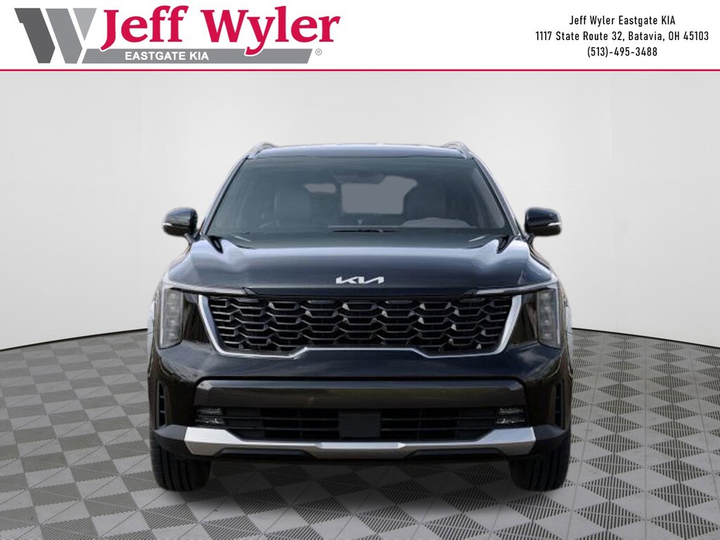 Aurora Black 2026 Kia Sorento Plug-In Hybrid EX 1.6L I4 DGI Hybrid Turbocharged DOHC 16V LEV3-SULEV30 AWD 6-Speed Automatic Jeff Wyler Eastgate Auto Mall is delighted to offer this attractive-looking 2026 Kia Sorento Plug-In Hybrid EX in Aurora Black. Well equipped with: EX Premium Package (2nd Row Captain's Chairs, LED Interior Lighting, Power Sunroof with Power Sunshade, and Radio: AM/FM Bose Premium Audio System), 3rd row seats: split-bench, 4-Wheel Disc Brakes, 6 Speakers, ABS brakes, Air Conditioning, All Weather Floor Mats, Alloy wheels, AM/FM radio: SiriusXM, Apple CarPlay & Android Auto, Auto High-beam Headlights, Auto-Dimming Mirror with HomeLink (PnP), Auto-dimming Rear-View mirror, Automatic temperature control, Brake assist, Bumpers: body-color, Carpeted Cargo Mat with Seatback Protection, Delay-off headlights, Driver door bin, Driver vanity mirror, Dual front impact airbags, Dual front side impact airbags, Electronic Stability Control, Emergency communication system: 911 Connect, Exterior Parking Camera Rear, Four wheel independent suspension, Front anti-roll bar, Front Bucket Seats, Front Center Armrest, Front dual zone A/C, Front fog lights, Front reading lights, Fully automatic headlights, Heated door mirrors, Heated Front Bucket Seats, Heated front seats, Illuminated entry, Knee airbag, Leather steering wheel, Low tire pressure warning, Navigation System, Occupant sensing airbag, Outside temperature display, Overhead airbag, Overhead console, Panic alarm, Passenger door bin, Passenger vanity mirror, Power door mirrors, Power driver seat, Power Liftgate, Power passenger seat, Power steering, Power windows, Radio data system, Radio: AM/FM/SiriusXM Audio System, Rear anti-roll bar, Rear reading lights, Rear seat center armrest, Rear side impact airbag, Rear window defroster, Rear window wiper, Remote keyless entry, Security system, Speed control, Speed-sensing steering, Split folding rear seat, Spoiler, Steering wheel mounted audio controls, SynTex Artificial Leather Seat Trim, Tachometer, Telescoping steering wheel, Tilt steering wheel, Traction control, Trip computer, Turn signal indicator mirrors, Variably intermittent wipers, and Wheels: 19" Machine-Finished Aero Alloy. Price includes: $2000 - Kia Customer Cash. Exp. 03/02/2026
