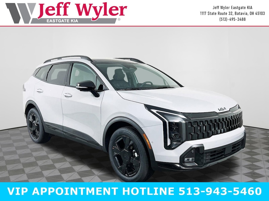 Wolf Gray 2026 Kia Sportage X-Line I4 AWD 8-Speed Automatic 23/30 City/Highway MPG Jeff Wyler Eastgate Auto Mall is excited to offer this beautiful 2026 Kia Sportage X-Line in Wolf Gray. Well equipped with: X-Line Premium Package (LED Interior Lighting, Panoramic Sunroof, and Smart Power Liftgate), X-Line Technology Package (12.3-in TFT Cluster, Curve Type, LED Front Fog Lights, Memory Driver Seat and Outside Mirrors, Parking Collision Avoidance-Assist - Reverse, Parking Distance Warning, Power-Folding Outside Mirrors, Radio: AM/FM/HD Premium Audio System, and Surround View Monitor with Blind Spot View Monitor), 4-Wheel Disc Brakes, 6 Speakers, ABS brakes, Air Conditioning, All Weather Mats, Alloy wheels, Auto Dimming Mirror with HomeLink, Auto High-beam Headlights, Automatic temperature control, Brake assist, Bumpers: body-color, Delay-off headlights, Driver door bin, Driver vanity mirror, Dual front impact airbags, Dual front side impact airbags, Electronic Stability Control, Emergency communication system: Kia Connect (includes 1 year free trial), Four wheel independent suspension, Front anti-roll bar, Front Bucket Seats, Front Center Armrest, Front dual zone A/C, Fully automatic headlights, Garage door transmitter, Heated door mirrors, Heated Front Bucket Seats, Heated front seats, Illuminated entry, Leather steering wheel, Low tire pressure warning, Occupant sensing airbag, Outside temperature display, Overhead airbag, Overhead console, Panic alarm, Passenger door bin, Passenger vanity mirror, Power door mirrors, Power driver seat, Power steering, Power windows, Radio: AM/FM/HD Audio System, Rain sensing wipers, Rear anti-roll bar, Rear seat center armrest, Rear side impact airbag, Rear window defroster, Rear window wiper, Remote keyless entry, Security system, Speed control, Speed-sensing steering, Split folding rear seat, Spoiler, Steering wheel mounted audio controls, Syntex Premium Leatherette Seat Trim, Tachometer, Telescoping steering wheel, Tilt steering wheel, Traction control, Trip computer, Turn signal indicator mirrors, Variably intermittent wipers, and Wheels: 19" x 7.5J Gloss Black Alloy. 23/30 City/Highway MPG