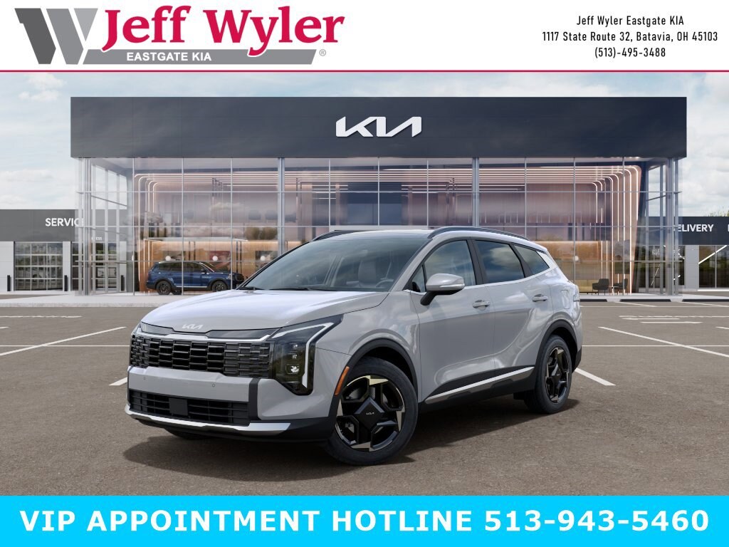 Wolf Gray 2026 Kia Sportage EX I4 FWD 8-Speed Automatic 25/33 City/Highway MPG Jeff Wyler Eastgate Auto Mall is pleased to offer this attractive 2026 Kia Sportage EX in Wolf Gray. Well equipped with: EX Panorama Roof Package (LED Interior Lighting, Panoramic Sunroof, and Roof Rails), 18" x 7.5J Alloy Wheels, 4-Wheel Disc Brakes, 6 Speakers, ABS brakes, Air Conditioning, Alloy wheels, AM/FM radio, Auto High-beam Headlights, Automatic temperature control, Brake assist, Bumpers: body-color, Cargo Mat, Carpeted Floor Mats, Delay-off headlights, Driver door bin, Driver vanity mirror, Dual front impact airbags, Dual front side impact airbags, Electronic Stability Control, Emergency communication system: Kia Connect (includes 1 year free trial), Four wheel independent suspension, Front anti-roll bar, Front Bucket Seats, Front Center Armrest, Front dual zone A/C, Fully automatic headlights, Heated door mirrors, Heated Front Bucket Seats, Heated front seats, Illuminated entry, Leather Shift Knob, Leather steering wheel, Low tire pressure warning, Occupant sensing airbag, Outside temperature display, Overhead airbag, Overhead console, Panic alarm, Passenger door bin, Passenger vanity mirror, Power door mirrors, Power driver seat, Power Liftgate, Power steering, Power windows, Radio: AM/FM/HD Audio System, Rain sensing wipers, Rear anti-roll bar, Rear seat center armrest, Rear side impact airbag, Rear window defroster, Rear window wiper, Remote keyless entry, Security system, Speed control, Speed-sensing steering, Split folding rear seat, Spoiler, Steering wheel mounted audio controls, Syntex Leatherette Seat Trim, Tachometer, Telescoping steering wheel, Tilt steering wheel, Traction control, Trip computer, Turn signal indicator mirrors, and Variably intermittent wipers. 25/33 City/Highway MPG
