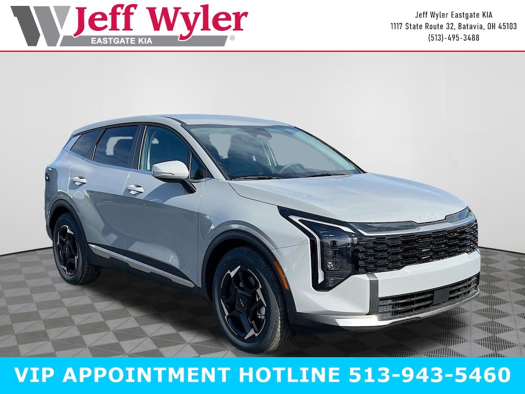 Wolf Gray 2026 Kia Sportage EX I4 FWD 8-Speed Automatic 25/33 City/Highway MPG Jeff Wyler Eastgate Auto Mall is excited to offer this outstanding-looking 2026 Kia Sportage EX in Wolf Gray. Well equipped with: 18" x 7.5J Alloy Wheels, 4-Wheel Disc Brakes, 6 Speakers, ABS brakes, Air Conditioning, All Weather Mats, Alloy wheels, Auto Dimming Mirror with HomeLink, Auto High-beam Headlights, Automatic temperature control, Brake assist, Bumpers: body-color, Delay-off headlights, Driver door bin, Driver vanity mirror, Dual front impact airbags, Dual front side impact airbags, Electronic Stability Control, Emergency communication system: Kia Connect (includes 1 year free trial), Four wheel independent suspension, Front anti-roll bar, Front Bucket Seats, Front Center Armrest, Front dual zone A/C, Fully automatic headlights, Heated door mirrors, Heated Front Bucket Seats, Heated front seats, Illuminated entry, Leather Shift Knob, Leather steering wheel, Low tire pressure warning, Occupant sensing airbag, Outside temperature display, Overhead airbag, Overhead console, Panic alarm, Passenger door bin, Passenger vanity mirror, Power door mirrors, Power driver seat, Power Liftgate, Power steering, Power windows, Radio: AM/FM/HD Audio System, Rain sensing wipers, Rear anti-roll bar, Rear seat center armrest, Rear side impact airbag, Rear window defroster, Rear window wiper, Remote keyless entry, Security system, Speed control, Speed-sensing steering, Split folding rear seat, Spoiler, Steering wheel mounted audio controls, Syntex Leatherette Seat Trim, Tachometer, Telescoping steering wheel, Tilt steering wheel, Traction control, Trip computer, Turn signal indicator mirrors, and Variably intermittent wipers. 25/33 City/Highway MPG