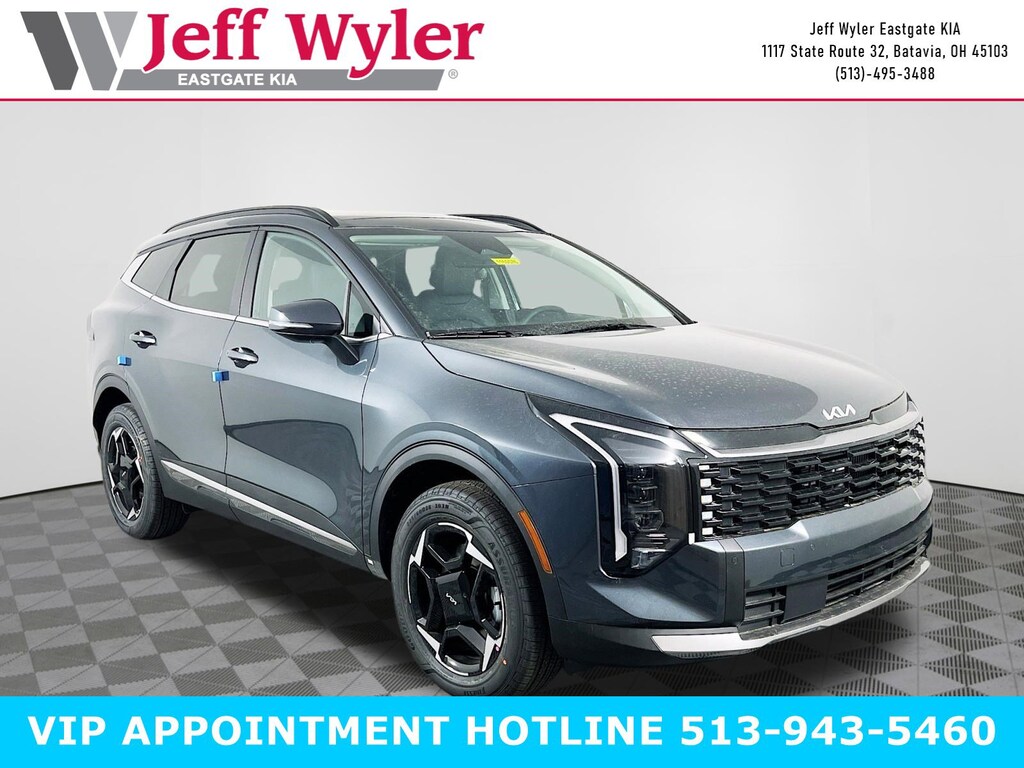 Gravity Gray 2026 Kia Sportage Hybrid EX 1.6L Turbo GDI 4-Cylinder AWD 6-Speed Automatic 35/36 City/Highway MPG Jeff Wyler Eastgate Auto Mall is very proud to offer this handsome-looking 2026 Kia Sportage Hybrid EX in Gravity Gray. Well equipped with: EX Panoramic Sunroof Package (LED Interior Lighting and Panoramic Sunroof), 4-Wheel Disc Brakes, 6 Speakers, ABS brakes, Air Conditioning, All Weather Floor Mats, Alloy wheels, Auto High-beam Headlights, Auto-Dimming Mirror with HomeLink, Automatic temperature control, Brake assist, Bumpers: body-color, Delay-off headlights, Driver door bin, Driver vanity mirror, Dual front impact airbags, Dual front side impact airbags, Electronic Stability Control, Emergency communication system, Four wheel independent suspension, Front anti-roll bar, Front Bucket Seats, Front Center Armrest, Front dual zone A/C, Fully automatic headlights, Heated door mirrors, Heated Front Bucket Seats, Heated front seats, Illuminated entry, Leather steering wheel, Low tire pressure warning, Occupant sensing airbag, Outside temperature display, Overhead airbag, Overhead console, Panic alarm, Passenger door bin, Passenger vanity mirror, Power door mirrors, Power driver seat, Power Liftgate, Power steering, Power windows, Radio: AM/FM/HD Audio System, Rain sensing wipers, Rear anti-roll bar, Rear seat center armrest, Rear side impact airbag, Rear window defroster, Rear window wiper, Remote keyless entry, Security system, Speed control, Speed-sensing steering, Split folding rear seat, Spoiler, Steering wheel mounted audio controls, Syntex Leatherette Seat Trim, Tachometer, Telescoping steering wheel, Tilt steering wheel, Traction control, Trip computer, Turn signal indicator mirrors, Variably intermittent wipers, and Wheels: 18" x 7.5J Machined Alloy. 35/36 City/Highway MPG
