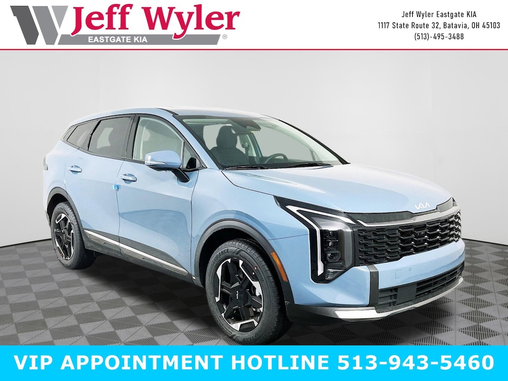Heritage Blue 2026 Kia Sportage Hybrid S 1.6L Turbo GDI 4-Cylinder AWD 6-Speed Automatic 35/36 City/Highway MPG Jeff Wyler Eastgate Auto Mall is excited to offer this charming 2026 Kia Sportage Hybrid S in Heritage Blue. Well equipped with: 4-Wheel Disc Brakes, 6 Speakers, ABS brakes, Air Conditioning, All Weather Floor Mats, Alloy wheels, Auto High-beam Headlights, Auto-Dimming Mirror with HomeLink, Automatic temperature control, Brake assist, Bumpers: body-color, Cloth Seat Trim, Delay-off headlights, Driver door bin, Driver vanity mirror, Dual front impact airbags, Dual front side impact airbags, Electronic Stability Control, Emergency communication system, Four wheel independent suspension, Front anti-roll bar, Front Bucket Seats, Front Center Armrest, Front dual zone A/C, Fully automatic headlights, Heated door mirrors, Heated Front Bucket Seats, Heated front seats, Illuminated entry, Leather steering wheel, Low tire pressure warning, Occupant sensing airbag, Outside temperature display, Overhead airbag, Overhead console, Panic alarm, Passenger door bin, Passenger vanity mirror, Power door mirrors, Power driver seat, Power steering, Power windows, Radio: AM/FM/HD Audio System, Rain sensing wipers, Rear anti-roll bar, Rear seat center armrest, Rear side impact airbag, Rear window defroster, Rear window wiper, Remote keyless entry, Security system, Speed control, Speed-sensing steering, Split folding rear seat, Spoiler, Steering wheel mounted audio controls, Tachometer, Telescoping steering wheel, Tilt steering wheel, Traction control, Trip computer, Turn signal indicator mirrors, Variably intermittent wipers, and Wheels: 18" x 7.5J Dark Finish Alloy. 35/36 City/Highway MPG