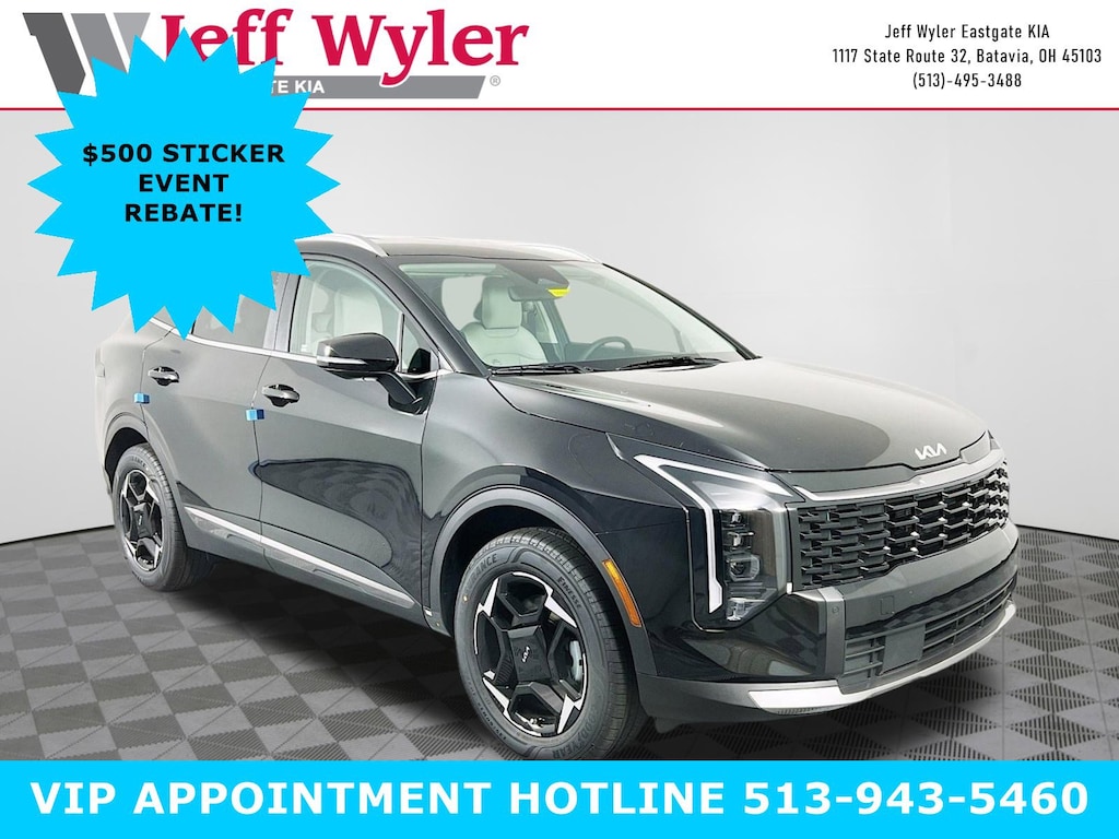 Priced below KBB Fair Purchase Price! Fusion Black 2026 Kia Sportage Hybrid EX 1.6L Turbo GDI 4-Cylinder AWD 6-Speed Automatic 35/36 City/Highway MPG Jeff Wyler Eastgate Auto Mall is proud to offer this fantastic-looking 2026 Kia Sportage Hybrid EX in Fusion Black. Well equipped with: 4-Wheel Disc Brakes, 6 Speakers, ABS brakes, Air Conditioning, Alloy wheels, Auto High-beam Headlights, Automatic temperature control, Brake assist, Bumpers: body-color, Carpeted Floor Mats, Delay-off headlights, Driver door bin, Driver vanity mirror, Dual front impact airbags, Dual front side impact airbags, Electronic Stability Control, Emergency communication system, Four wheel independent suspension, Front anti-roll bar, Front Bucket Seats, Front Center Armrest, Front dual zone A/C, Fully automatic headlights, Heated door mirrors, Heated Front Bucket Seats, Heated front seats, Illuminated entry, Leather steering wheel, Low tire pressure warning, Occupant sensing airbag, Outside temperature display, Overhead airbag, Overhead console, Panic alarm, Passenger door bin, Passenger vanity mirror, Power door mirrors, Power driver seat, Power Liftgate, Power steering, Power windows, Radio: AM/FM/HD Audio System, Rain sensing wipers, Rear anti-roll bar, Rear seat center armrest, Rear side impact airbag, Rear window defroster, Rear window wiper, Remote keyless entry, Security system, Speed control, Speed-sensing steering, Split folding rear seat, Spoiler, Steering wheel mounted audio controls, Syntex Leatherette Seat Trim, Tachometer, Telescoping steering wheel, Tilt steering wheel, Traction control, Trip computer, Turn signal indicator mirrors, Variably intermittent wipers, and Wheels: 18" x 7.5J Machined Alloy. 35/36 City/Highway MPG Price includes: $500 - Sticker Sales Event Retail Bonus Cash. Exp. 01/02/2026