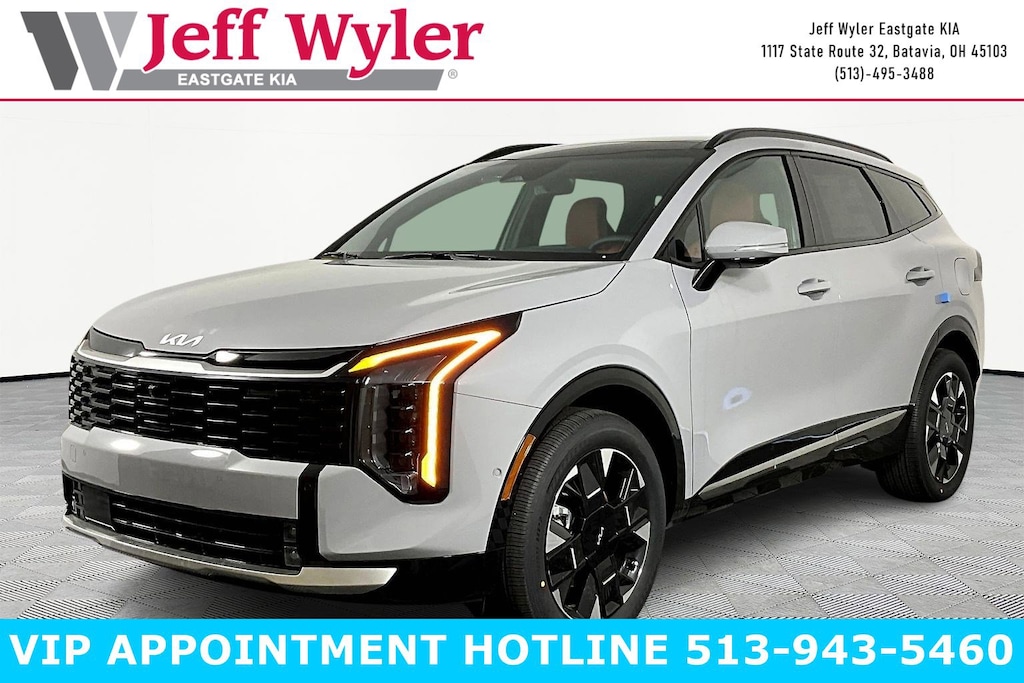Wolf Gray 2026 Kia Sportage Hybrid SX-Prestige 1.6L Turbo GDI 4-Cylinder AWD 6-Speed Automatic 35/36 City/Highway MPG Jeff Wyler Eastgate Auto Mall is proud to offer this fantastic-looking 2026 Kia Sportage Hybrid SX-Prestige in Wolf Gray. Well equipped with: Carmine Red Interior Color Package, 4-Wheel Disc Brakes, 8 Speakers, ABS brakes, Air Conditioning, Alloy wheels, AM/FM radio: SiriusXM, Auto High-beam Headlights, Auto-Dimming Mirror with HomeLink, Automatic temperature control, Brake assist, Bumpers: body-color, Carpeted Floor Mats, Compass, Delay-off headlights, Driver door bin, Driver vanity mirror, Dual front impact airbags, Dual front side impact airbags, Electronic Stability Control, Emergency communication system, Four wheel independent suspension, Front anti-roll bar, Front Bucket Seats, Front Center Armrest, Front dual zone A/C, Front fog lights, Front reading lights, Fully automatic headlights, harman/kardon® Speakers, Heated and Ventilated Front Bucket Seats, Heated door mirrors, Heated front seats, Heated steering wheel, Illuminated entry, Leather steering wheel, Low tire pressure warning, Memory seat, Navigation System, Occupant sensing airbag, Outside temperature display, Overhead airbag, Overhead console, Panic alarm, Passenger door bin, Passenger vanity mirror, Power door mirrors, Power driver seat, Power Liftgate, Power moonroof, Power passenger seat, Power steering, Power windows, Radio: AM/FM/HD Premium Audio System, Rain sensing wipers, Rear anti-roll bar, Rear reading lights, Rear seat center armrest, Rear side impact airbag, Rear window defroster, Rear window wiper, Remote keyless entry, Security system, Speed control, Speed-sensing steering, Split folding rear seat, Spoiler, Steering wheel mounted audio controls, Syntex Premium Leatherette Seat Trim, Tachometer, Telescoping steering wheel, Tilt steering wheel, Traction control, Trip computer, Turn signal indicator mirrors, Variably intermittent wipers, Ventilated front seats, and Wheels: 19" x 7.5J Alloy. 35/36 City/Highway MPG