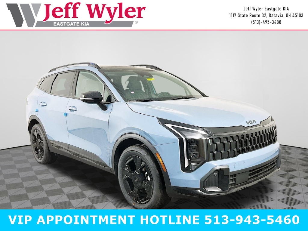 Heritage Blue 2026 Kia Sportage Hybrid X-Line 1.6L Turbo GDI 4-Cylinder AWD 6-Speed Automatic 35/36 City/Highway MPG Jeff Wyler Eastgate Auto Mall is pumped up to offer this terrific-looking 2026 Kia Sportage Hybrid X-Line in Heritage Blue. Well equipped with: 4-Wheel Disc Brakes, 6 Speakers, ABS brakes, Air Conditioning, All Weather Floor Mats, Alloy wheels, Auto High-beam Headlights, Automatic temperature control, Brake assist, Bumpers: body-color, Cargo Tray, Delay-off headlights, Driver door bin, Driver vanity mirror, Dual front impact airbags, Dual front side impact airbags, Electronic Stability Control, Emergency communication system, Four wheel independent suspension, Front anti-roll bar, Front Bucket Seats, Front Center Armrest, Front dual zone A/C, Fully automatic headlights, Heated door mirrors, Heated Front Bucket Seats, Heated front seats, Illuminated entry, Leather steering wheel, Low tire pressure warning, Mud Guards, Occupant sensing airbag, Outside temperature display, Overhead airbag, Overhead console, Panic alarm, Passenger door bin, Passenger vanity mirror, Power door mirrors, Power driver seat, Power Liftgate, Power moonroof, Power steering, Power windows, Radio: AM/FM/HD Audio System, Rain sensing wipers, Rear anti-roll bar, Rear seat center armrest, Rear side impact airbag, Rear window defroster, Rear window wiper, Remote keyless entry, Security system, Speed control, Speed-sensing steering, Split folding rear seat, Spoiler, Steering wheel mounted audio controls, Syntex Premium Leatherette Seat Trim, Tachometer, Telescoping steering wheel, Tilt steering wheel, Traction control, Trip computer, Turn signal indicator mirrors, Variably intermittent wipers, and Wheels: 19" x 7.5J Gloss Black Alloy. 35/36 City/Highway MPG