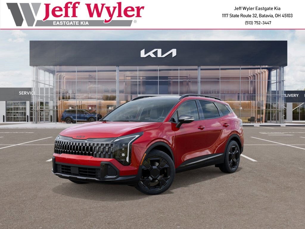 Red 2026 Kia Sportage X-Line I4 AWD 8-Speed Automatic 23/30 City/Highway MPG Jeff Wyler Eastgate Auto Mall is honored to offer this great-looking 2026 Kia Sportage X-Line in Red. Well equipped with: X-Line Premium Package (LED Interior Lighting, Panoramic Sunroof, and Smart Power Liftgate), 4-Wheel Disc Brakes, 6 Speakers, ABS brakes, Air Conditioning, All Weather Mats, Alloy wheels, Auto High-beam Headlights, Auto-Dimming Mirror w/HomeLink, Automatic temperature control, Brake assist, Bumpers: body-color, Delay-off headlights, Driver door bin, Driver vanity mirror, Dual front impact airbags, Dual front side impact airbags, Electronic Stability Control, Emergency communication system: Kia Connect (includes 1 year free trial), Four wheel independent suspension, Front anti-roll bar, Front Bucket Seats, Front Center Armrest, Front dual zone A/C, Fully automatic headlights, Heated door mirrors, Heated Front Bucket Seats, Heated front seats, Illuminated entry, Leather steering wheel, Low tire pressure warning, Occupant sensing airbag, Outside temperature display, Overhead airbag, Overhead console, Panic alarm, Passenger door bin, Passenger vanity mirror, Power door mirrors, Power driver seat, Power steering, Power windows, Radio: AM/FM/HD Audio System, Rain sensing wipers, Rear anti-roll bar, Rear seat center armrest, Rear side impact airbag, Rear window defroster, Rear window wiper, Remote keyless entry, Security system, Speed control, Speed-sensing steering, Split folding rear seat, Spoiler, Steering wheel mounted audio controls, SynTex Premium Leatherette Seat Trim, Tachometer, Telescoping steering wheel, Tilt steering wheel, Traction control, Trip computer, Turn signal indicator mirrors, Variably intermittent wipers, and Wheels: 19" x 7.5J Gloss Black Alloy. 23/30 City/Highway MPG