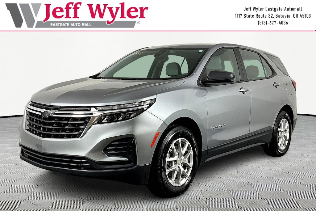 Jeff Wyler Eastgate Auto Mall is pleased to offer this gorgeous 2023 Chevrolet Equinox LS in Sterling Gray Metallic. Well equipped with: Preferred Equipment Group 1LS, 17" Aluminum Wheels, 2 Rear USB Charging-Only Ports, 2 USB Ports & Auxiliary Input Jack, 3.50 Final Drive Axle Ratio, 4-Wheel Disc Brakes, 6 Speakers, 6-Speaker Audio System Feature, ABS brakes, Air Conditioning, Alloy wheels, AM/FM radio: SiriusXM, Auto High-beam Headlights, Bluetooth® For Phone, Brake assist, Bumpers: body-color, Compass, Delay-off headlights, Driver 4-Way Manual Seat Adjuster, Driver door bin, Driver vanity mirror, Dual front impact airbags, Dual front side impact airbags, Electronic Stability Control, Emergency communication system: OnStar and Chevrolet connected services capable, Four wheel independent suspension, Front & Rear Black Bowtie Emblems (LPO), Front anti-roll bar, Front Bucket Seats, Front Center Armrest, Front Passenger 4-Way Manual Seat Adjuster, Front reading lights, Fully automatic headlights, Heated door mirrors, Illuminated entry, Low tire pressure warning, Occupant sensing airbag, Outside temperature display, Overhead airbag, Overhead console, Panic alarm, Passenger door bin, Passenger vanity mirror, Power door mirrors, Power steering, Power windows, Premium audio system: Chevrolet Infotainment 3, Premium Cloth Seat Trim, Radio data system, Radio: Chevrolet Infotainment 3 System w/AM/FM, Rear anti-roll bar, Rear reading lights, Rear seat center armrest, Rear window defroster, Rear window wiper, Remote keyless entry, Security system, SiriusXM Radio, Speed control, Speed-sensing steering, Split folding rear seat, Spoiler, Steering wheel mounted audio controls, Tachometer, Telescoping steering wheel, Tilt steering wheel, Traction control, Trip computer, Variably intermittent wipers, and Wireless Apple CarPlay/Wireless Android Auto. CARFAX One-Owner. Ask about available certifications. Used vehicles 10 years of age or newer with less than 100,000 miles are eligible for the Wyler Assurance Program, but eligible vehicles must pass our reconditioning process and multi-point inspection. Provided the vehicle passes inspection, vehicles will be eligible for the 6 month/6,000 mile limited warranty. The 6 month/6,000 mile limited warranty is NOT available on AS-IS vehicles, wholesale vehicles, lease buyback/pass-thru vehicles or un-inspected vehicles. Note that this program can also apply to vehicles where the remaining factory coverage is less than 6 months or 6,000 miles. Please check the Federal Trade Commission (FTC) Buyers guide on the vehicle for full details as to whether or not warranty coverage may apply. Contact Dealer for additional details. The Wyler Assurance 6 month/6,000 Mile limited warranty ends 6 months from the date of the Retail Purchase Agreement (BUYERS ORDER) or when the vehicle's odometer registers 6,000 additional miles to the mileage listed on the BUYERS ORDER, whichever comes first. Your Deductible - The warranty holder on your contract pays the first $100 of each covered repair.