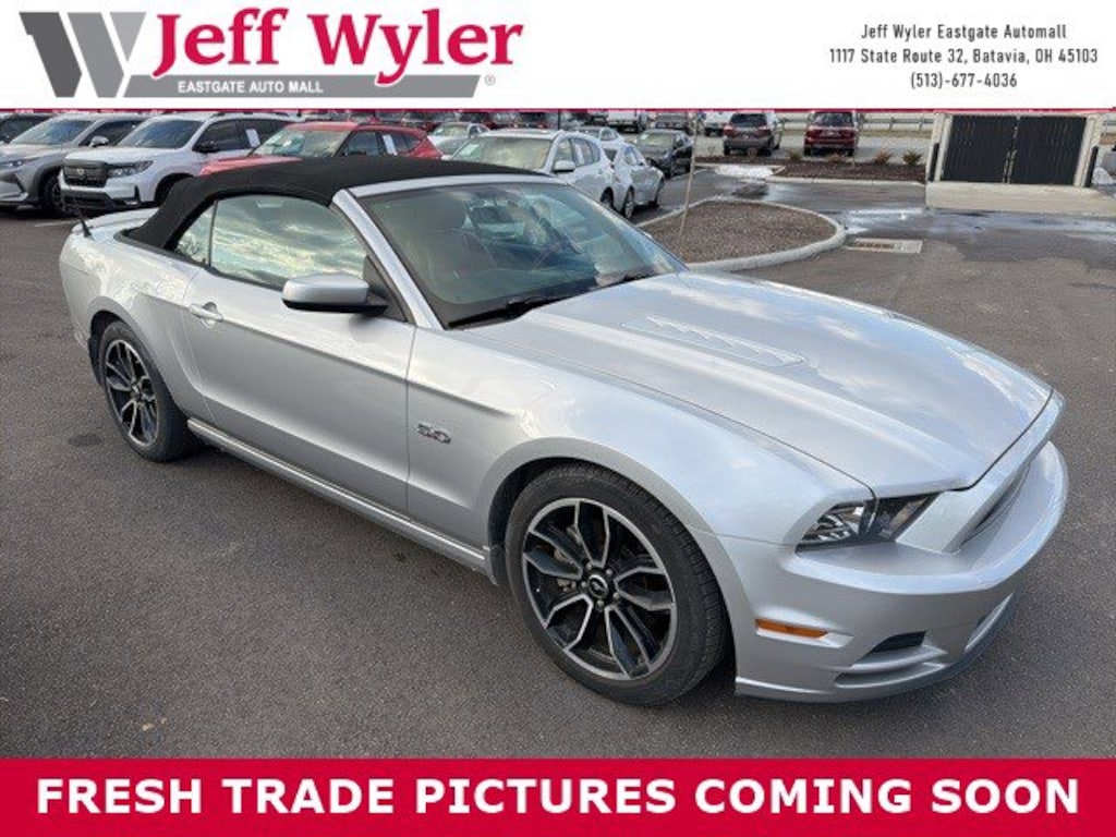 Jeff Wyler Eastgate Auto Mall is very proud to offer this charming-looking 2013 Ford Mustang GT in Silver. Well equipped with: 18" x 8" Sparkle Silver Painted Aluminum Wheels, 4 Speakers, 4-Wheel Disc Brakes, ABS brakes, Air Conditioning, Alloy wheels, AM/FM radio, Brake assist, Bumpers: body-color, CD player, Cloth Bucket Seats, Compass, Convertible roof lining, Delay-off headlights, Driver door bin, Driver vanity mirror, Dual front impact airbags, Dual front side impact airbags, Electronic Stability Control, Front anti-roll bar, Front Bucket Seats, Front Center Armrest, Front fog lights, Front reading lights, Front wheel independent suspension, Fully automatic headlights, Glass rear window, High-Intensity Discharge Headlights, Illuminated entry, Low tire pressure warning, Occupant sensing airbag, Outside temperature display, Panic alarm, Passenger door bin, Passenger vanity mirror, Power convertible roof, Power door mirrors, Power steering, Power windows, Premium AM/FM Stereo w/Single CD/Clock, Radio data system, Rear anti-roll bar, Rear window defroster, Remote keyless entry, Speed control, Speed-sensing steering, Spoiler, Steering wheel mounted audio controls, Tachometer, Tilt steering wheel, Traction control, Trip computer, Variably intermittent wipers, and Voltmeter. Clean CARFAX. Awards: * 2013 KBB.com 5-Year Cost to Own Awards * 2013 KBB.com Brand Image Awards Ask about available certifications. Used vehicles 10 years of age or newer with less than 100,000 miles are eligible for the Wyler Assurance Program, but eligible vehicles must pass our reconditioning process and multi-point inspection. Provided the vehicle passes inspection, vehicles will be eligible for the 6 month/6,000 mile limited warranty. The 6 month/6,000 mile limited warranty is NOT available on AS-IS vehicles, wholesale vehicles, lease buyback/pass-thru vehicles or un-inspected vehicles. Note that this program can also apply to vehicles where the remaining factory coverage is less than 6 months or 6,000 miles. Please check the Federal Trade Commission (FTC) Buyers guide on the vehicle for full details as to whether or not warranty coverage may apply. Contact Dealer for additional details. The Wyler Assurance 6 month/6,000 Mile limited warranty ends 6 months from the date of the Retail Purchase Agreement (BUYERS ORDER) or when the vehicle's odometer registers 6,000 additional miles to the mileage listed on the BUYERS ORDER, whichever comes first. Your Deductible - The warranty holder on your contract pays the first $100 of each covered repair.