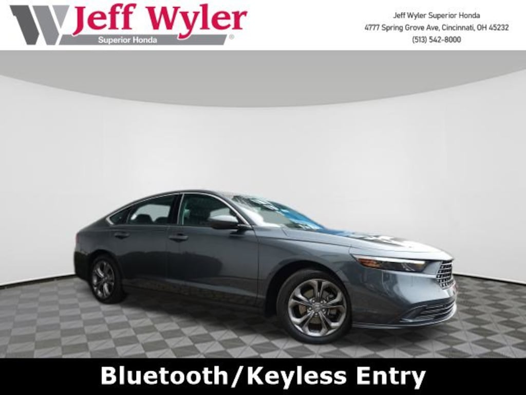 Jeff Wyler Superior Honda is pumped up to offer this stunning 2024 Honda Accord EX in Meteorite Gray Metallic. BLUETOOTH, MOONROOF SUNROOF, CLEAN CARFAX...NO ACCIDENTS, HONDA CERTIFIED!, REMAINDER OF FACTORY WARRANTY, and ONE OWNER Accord EX, HondaTrue Certified Certified, 4D Sedan, 1.5T I4 DOHC 16V Turbocharged VTEC, CVT, FWD, Meteorite Gray Metallic, Black Cloth, 4-Wheel Disc Brakes, 8 Speakers, ABS brakes, Adaptive Cruise Control: Adaptive Cruise Control (ACC) with Low-Speed Follow, Air Conditioning, Alloy wheels, AM/FM radio, Apple CarPlay/Android Auto, Auto High-beam Headlights, Auto-dimming Rear-View mirror, Automatic temperature control, Blind Spot Information (BSI) System warning, Brake assist, Bumpers: body-color, Compass, Delay-off headlights, Driver door bin, Driver vanity mirror, Dual front impact airbags, Dual front side impact airbags, Electronic Stability Control, Emergency communication system: HondaLink Assist, Exterior Parking Cameras, Fabric Seat Trim, Four wheel independent suspension, Front anti-roll bar, Front Bucket Seats, Front Center Armrest, Front dual zone A/C, Front reading lights, Fully automatic headlights, Heated Front Bucket Seats, Heated front seats, Illuminated entry, Knee airbag, Lane departure: Lane Keeping Assist System (LKAS) active, Low tire pressure warning, Occupant sensing airbag, Outside temperature display, Overhead airbag, Overhead console, Panic alarm, Passenger door bin, Passenger vanity mirror, Power door mirrors, Power driver seat, Power moonroof, Power steering, Power windows, Radio data system, Radio: 180-Watt AM/FM Audio System, Rear anti-roll bar, Rear reading lights, Rear seat center armrest, Rear side impact airbag, Rear window defroster, Remote keyless entry, Security system, Speed control, Speed-sensing steering, Speed-Sensitive Wipers, Split folding rear seat, Steering wheel mounted audio controls, Tachometer, Telescoping steering wheel, Tilt steering wheel, Traction control, Trip computer, Variably intermittent wipers, and Wheels: 17" x 7.5" Pewter Gray Our PRE-OWNED vehicles are put through a rigorous 167- POINT QUALITY ASSURANCE INSPECTION along with an average amount of over $1,400.00 SPENT to recondition each vehicle so we can be sure to deliver you the highest quality vehicle like you deserve! ***ONLINE PRICE DOES NOT INCLUDE WYLER FAMILY FIRST PACKAGE*** Stop by 4777 Spring Grove Ave. Road to see for yourself, or give us a call @ 283-209-1858 to schedule your test drive!Vehicle pricing includes all offers and incentives. Due to limited inventory, offers and pricing are all subject to change. Tax, Title, Tags and $387 doc fees are not included in vehicle price shown and must be paid by the purchaser. Doc fees vary by location. Financing w/approved credit. Mileage est. Based on current EPA estimates reflecting new EPA methods beginning w/ 2008 models. For comparison only. Do not compare to pre 2008 models. Actual mileage may vary based on how you drive and maintain your vehicle. Information on this site includes 3rd party data believed to be reliable, subject to change without notice. Jeff Wyler reserves the right to correct any errors and/or omissions in the compilation or presentation of this data and makes no representations express or implied to any prospective purchaser as to the vehicle's condition, specifications, history, equipment or equipment function, price or warranties. This vehicle may be subject to an open recall that has not been repaired. Please consult safercar.gov for more information on the current status. It is the responsibility of purchaser to confirm any data prior to purchase. Other than MSRP, all offers only apply to this vehicle and are subject to change. Vehicle prices are subject to change and all vehicles are subject to prior sale and may not be available when you are ready to purchase. Prices listed on any other website may not be accepted. Dealership advertises the sale of vehicles through a number of different channels and cannot