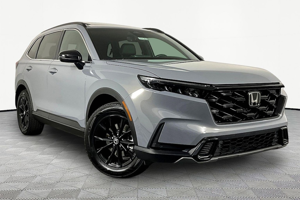 Jeff Wyler Honda of Colerain is proud to offer this good-looking 2024 Honda CR-V Hybrid Sport-L in Urban Gray Pearl. Well equipped with: 4-Wheel Disc Brakes, 4.438 Axle Ratio, 8 Speakers, ABS brakes, Adaptive Cruise Control: Adaptive Cruise Control (ACC) with Low-Speed Follow, Air Conditioning, Alloy wheels, AM/FM radio: SiriusXM, Auto High-beam Headlights, Auto-dimming Rear-View mirror, Automatic temperature control, Blind Spot Information (BSI) System warning, Brake assist, Bumpers: body-color, Compass, Delay-off headlights, Driver door bin, Driver vanity mirror, Dual front impact airbags, Dual front side impact airbags, Electronic Stability Control, Exterior Parking Camera Rear, Four wheel independent suspension, Front anti-roll bar, Front Bucket Seats, Front Center Armrest, Front dual zone A/C, Front reading lights, Fully automatic headlights, Heated door mirrors, Heated Front Bucket Seats, Heated front seats, Illuminated entry, Knee airbag, Leather Seat Trim, Leather Shift Knob, Leather steering wheel, Low tire pressure warning, Memory seat, Occupant sensing airbag, Outside temperature display, Overhead airbag, Overhead console, Panic alarm, Passenger door bin, Passenger vanity mirror, Power door mirrors, Power driver seat, Power Liftgate, Power moonroof, Power passenger seat, Power steering, Power windows, Radio data system, Radio: 320-Watt AM/FM/HD/SiriusXM Audio System, Rear anti-roll bar, Rear reading lights, Rear seat center armrest, Rear side impact airbag, Rear window defroster, Rear window wiper, Remote keyless entry, Security system, Speed control, Speed-sensing steering, Speed-Sensitive Wipers, Split folding rear seat, Spoiler, Steering wheel mounted audio controls, Telescoping steering wheel, Tilt steering wheel, Traction control, Trip computer, Turn signal indicator mirrors, Variably intermittent wipers, Wheels: 18" Berlina Black Alloy, and Wireless Apple CarPlay/Wireless Android Auto.