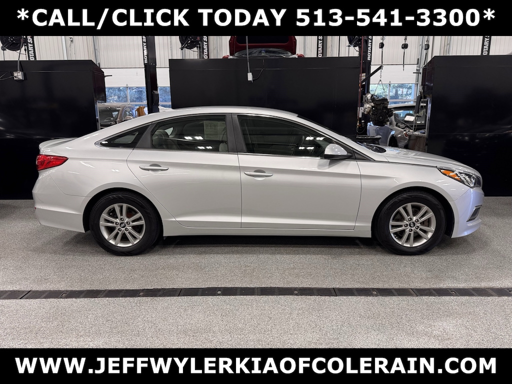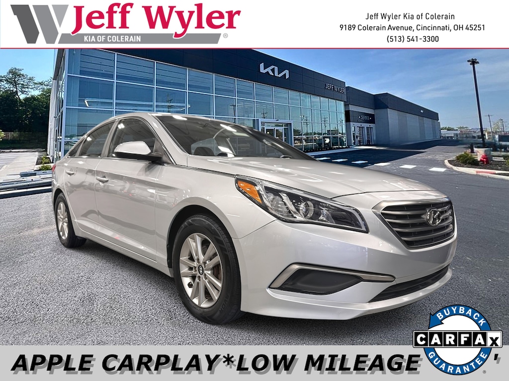Jeff Wyler Kia of Colerain is honored to offer this charming 2017 Hyundai Sonata SE in Symphony Silver. 16 x 6.5J Aluminum Alloy Wheels, 4-Wheel Disc Brakes, 6 Speakers, ABS brakes, Air Conditioning, Alloy wheels, AM/FM radio: SiriusXM, Apple CarPlay & Android Auto, Brake assist, Bumpers: body-color, Cargo Net, Carpeted Floor Mats, CD player, Delay-off headlights, Driver door bin, Driver vanity mirror, Dual front impact airbags, Dual front side impact airbags, Electronic Stability Control, Emergency communication system: Blue Link, Exterior Parking Camera Rear, Four wheel independent suspension, Front anti-roll bar, Front Bucket Seats, Front Center Armrest, Front reading lights, Fully automatic headlights, Heated door mirrors, Illuminated entry, Knee airbag, Low tire pressure warning, Occupant sensing airbag, Outside temperature display, Overhead airbag, Overhead console, Panic alarm, Passenger door bin, Passenger vanity mirror, Power door mirrors, Power steering, Power windows, Radio: AM/FM/SiriusXM/CD/MP3 Display Audio, Rear anti-roll bar, Rear seat center armrest, Rear window defroster, Remote keyless entry, Security system, Speed control, Speed-sensing steering, Speed-Sensitive Wipers, Split folding rear seat, Spoiler, Steering wheel mounted audio controls, Tachometer, Telescoping steering wheel, Tilt steering wheel, Traction control, Trip computer, Variably intermittent wipers, Wheel Locks, and YES Essentials Premium Cloth Seating Surfaces Our PRE-OWNED vehicles are put through a rigorous 167- POINT QUALITY ASSURANCE INSPECTION along with an average amount of over $1,400.00 SPENT to recondition each vehicle so we can be sure to deliver you the highest quality vehicle like you deserve! ***ONLINE PRICE DOES NOT INCLUDE WYLER FAMILY FIRST PACKAGE***