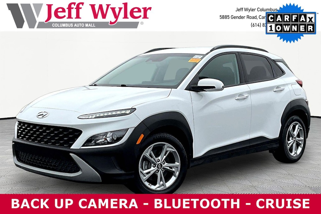 2022 Hyundai Kona Lunar White 2.0L I4 MPI DOHC 16V LEV3-ULEV70 147hp CVT SEL AWD CARFAX One-Owner. Clean CARFAX.28/33 City/Highway MPGCome visit the all new Jeff Wyler Chevrolet of Columbus the official Home of the Fresh Start Program! See how easy it is drive your new vehicle home today.