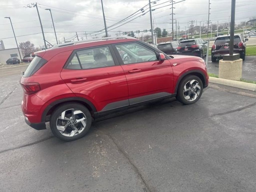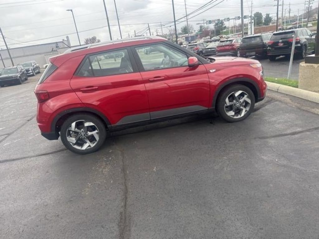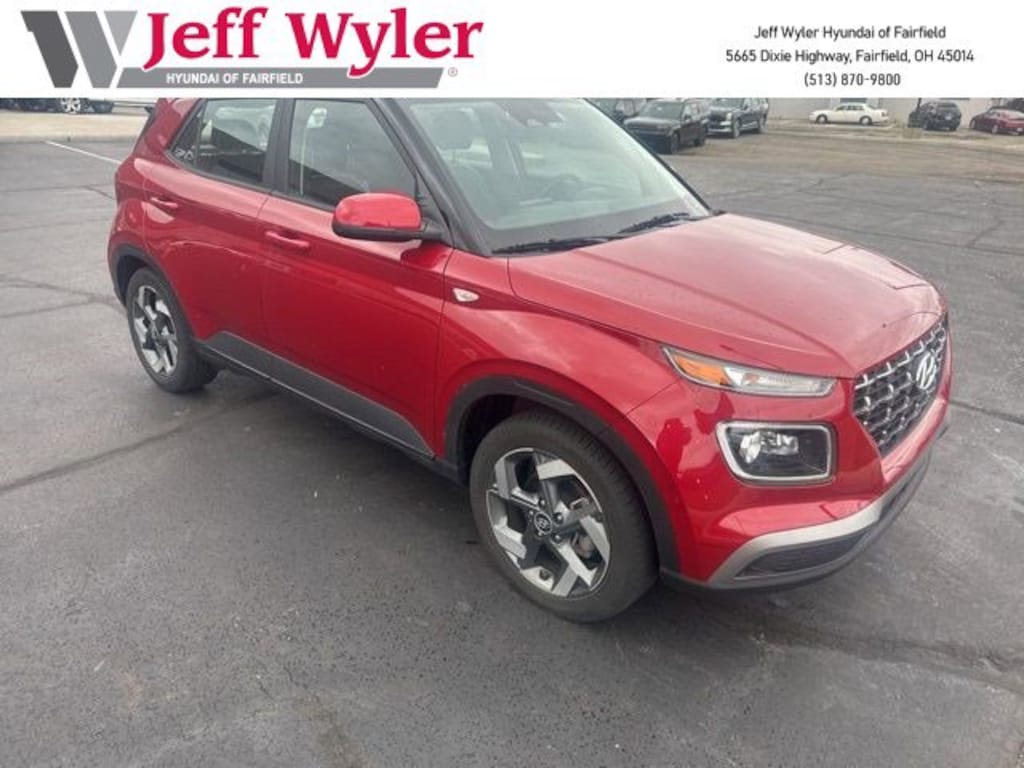 2023 Hyundai Venue Scarlet Red Pearl Limited FWD CVT I4 Android Auto, Apple CarPlay, CALL NOW FOR YOUR VIP APPOINTMENT 513-870-9800, FULLY SERVICED w/RECORDS, GUARANTEED FINANCING!! NO MATTER YOUR SITUATION WE CAN GET AN APPROVAL!!, THE #1 Volume dealer in the region! Come see why for yourself Today!!, WE PAY MORE FOR YOUR TRADE!!. 29/33 City/Highway MPG Jeff Wyler Hyundai of Fairfield is pumped up to offer this terrific-looking 2023 Hyundai Venue Limited in Scarlet Red Pearl. Well equipped with: Cargo Package (Cargo Blocks, Cargo Net, and Cargo Tray), Option Group 01, Android Auto, Apple CarPlay, CALL NOW FOR YOUR VIP APPOINTMENT 513-870-9800, FULLY SERVICED w/RECORDS, GUARANTEED FINANCING!! NO MATTER YOUR SITUATION WE CAN GET AN APPROVAL!!, THE #1 Volume dealer in the region! Come see why for yourself Today!!, WE PAY MORE FOR YOUR TRADE!!, 4-Wheel Disc Brakes, 6 Speakers, 6.483 Axle Ratio, 6.5J x 17" Alloy Wheels, ABS brakes, Air Conditioning, Alloy wheels, AM/FM radio: SiriusXM, Apple CarPlay & Android Auto, Auto High-beam Headlights, Automatic temperature control, Brake assist, Bumpers: body-color, Carpeted Floor Mats, Cloth & Leatherette Seat Trim, Cross Rails (Discontinued), Delay-off headlights, Driver door bin, Driver vanity mirror, Dual front impact airbags, Dual front side impact airbags, Electronic Stability Control, Emergency communication system, First Aid Kit, Front anti-roll bar, Front Bucket Seats, Front Center Armrest, Front reading lights, Front wheel independent suspension, Fully automatic headlights, Heated door mirrors, Heated Front Bucket Seats, Heated front seats, Illuminated entry, Leather Shift Knob, Leather steering wheel, Low tire pressure warning, Navigation System, Occupant sensing airbag, Outside temperature display, Overhead airbag, Overhead console, Panic alarm, Passenger door bin, Passenger vanity mirror, Power door mirrors, Power steering, Power windows, Radio: AM/FM/HD/SiriusXM w/Navigation System, Rear Seat Cup Holder, Rear window defroster, Rear window wiper, Remote keyless entry, Roof rack: rails only, Security system, Speed control, Speed-sensing steering, Split folding rear seat, Spoiler, Steering wheel mounted audio controls, Tachometer, Telescoping steering wheel, Tilt steering wheel, Traction control, Trip computer, and Variably intermittent wipers.