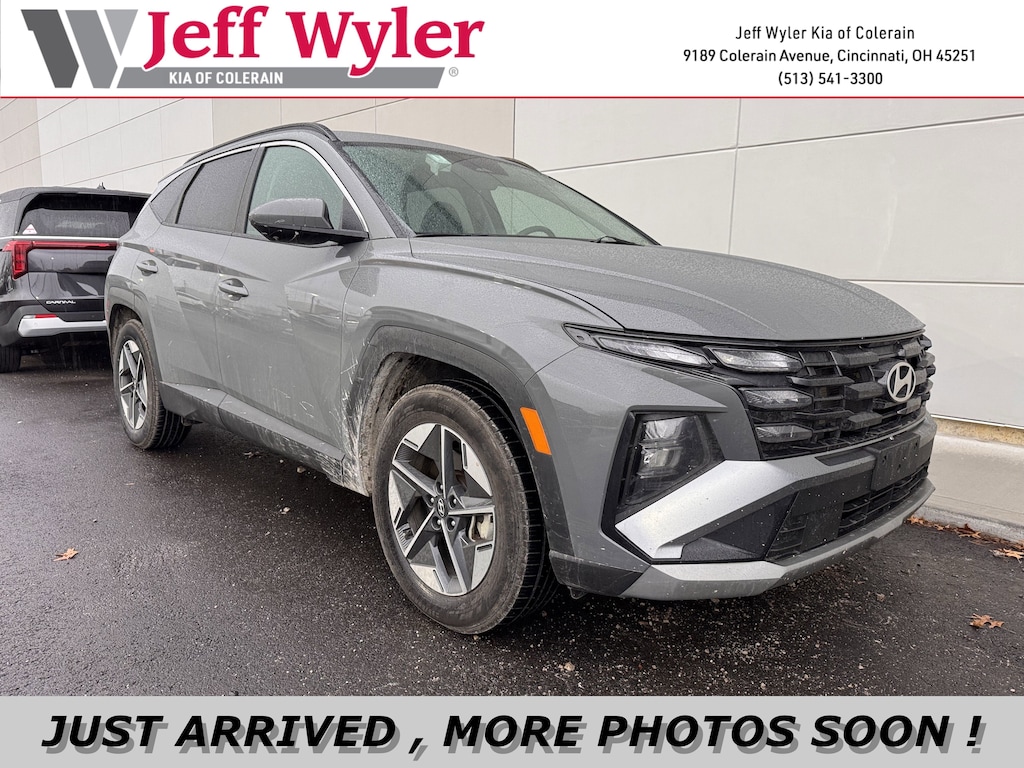Jeff Wyler Kia of Colerain is honored to offer this gorgeous 2025 Hyundai Tucson SEL in Hampton Gray. Option Group 01, 18" Alloy Wheels, 4-Wheel Disc Brakes, 6 Speakers, ABS brakes, Air Conditioning, Alloy wheels, AM/FM radio: SiriusXM, Apple CarPlay & Android Auto, Auto High-beam Headlights, Automatic temperature control, Brake assist, Bumpers: body-color, Delay-off headlights, Driver door bin, Driver vanity mirror, Dual front impact airbags, Dual front side impact airbags, Electronic Stability Control, Emergency communication system: Bluelink+, Four wheel independent suspension, Front anti-roll bar, Front Bucket Seats, Front Center Armrest, Front dual zone A/C, Front reading lights, Fully automatic headlights, Heated door mirrors, Heated Front Bucket Seats, Heated front seats, Illuminated entry, Low tire pressure warning, Occupant sensing airbag, Outside temperature display, Overhead airbag, Overhead console, Panic alarm, Passenger door bin, Passenger vanity mirror, Power door mirrors, Power driver seat, Power Liftgate, Power steering, Power windows, Radio data system, Radio: AM/FM/HD Audio System, Rear anti-roll bar, Rear reading lights, Rear seat center armrest, Rear side impact airbag, Rear window defroster, Rear window wiper, Remote keyless entry, Security system, Speed control, Split folding rear seat, Spoiler, Stain & Odor Resistant Cloth Seat Trim, Steering wheel mounted audio controls, Tachometer, Telescoping steering wheel, Tilt steering wheel, Traction control, Trip computer, and Variably intermittent wipers Our PRE-OWNED vehicles are put through a rigorous 167- POINT QUALITY ASSURANCE INSPECTION along with an average amount of over $1,400.00 SPENT to recondition each vehicle so we can be sure to deliver you the highest quality vehicle like you deserve! ***ONLINE PRICE DOES NOT INCLUDE WYLER FAMILY FIRST PACKAGE***