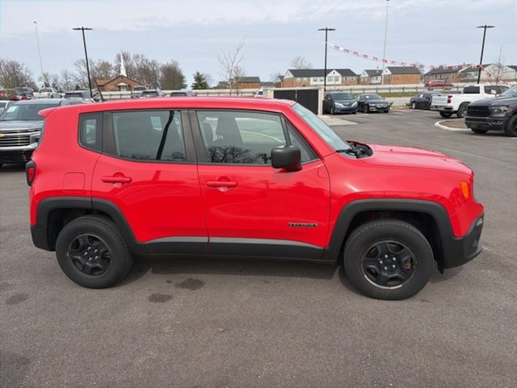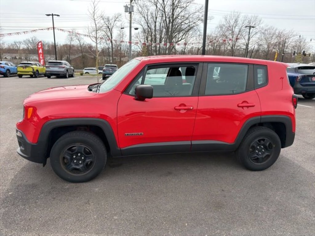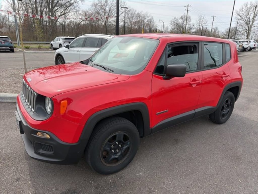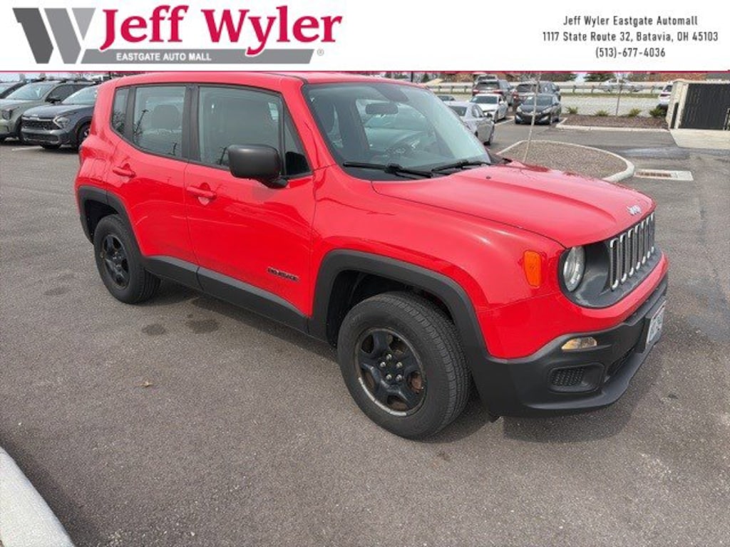 Jeff Wyler Eastgate Auto Mall is pleased to offer this stunning-looking 2017 Jeep Renegade Sport in Colorado Red. Well equipped with: Passive Entry Remote Start Package (Passive Entry/Keyless Go and Remote Start System), Power & Air Group (Air Conditioning, Exterior Mirrors w/Heating Element, Power Heated Mirrors, and Speed Control), Quick Order Package 27A, 16" x 6.5" Styled Steel Wheels, 4 Speakers, 4-Wheel Disc Brakes, ABS brakes, AM/FM radio, Anti-whiplash front head restraints, Brake assist, Cloth Low-Back Bucket Seats, Compass, Delay-off headlights, Driver door bin, Driver vanity mirror, Dual front impact airbags, Dual front side impact airbags, Electronic Stability Control, Four wheel independent suspension, Front anti-roll bar, Front Bucket Seats, Front Center Armrest, Front reading lights, Illuminated entry, Knee airbag, Low tire pressure warning, Normal Duty Suspension, Occupant sensing airbag, Outside temperature display, Overhead airbag, Overhead console, Panic alarm, Passenger door bin, Passenger vanity mirror, Power steering, Power windows, Radio data system, Radio: 3.0, Rear anti-roll bar, Rear window defroster, Rear window wiper, Remote keyless entry, Split folding rear seat, Spoiler, Steering wheel mounted audio controls, Tachometer, Telescoping steering wheel, Tilt steering wheel, Traction control, Trip computer, Variably intermittent wipers, and Voltmeter. Clean CARFAX. Reviews: * Lots of character with a classic Jeep look; agile handling when going around turns; plenty of easy-to-use technology features; best-in-class off-road capability with Trailhawk model. Source: EdmundsAwards: * 2017 KBB.com 10 Coolest New Cars Under $18,000 * 2017 KBB.com 10 Best All-Wheel-Drive Vehicles Under $25,000 * 2017 KBB.com 10 Most Awarded Brands Ask about available certifications. Used vehicles 10 years of age or newer with less than 100,000 miles are eligible for the Wyler Assurance Program, but eligible vehicles must pass our reconditioning process and multi-point inspection. Provided the vehicle passes inspection, vehicles will be eligible for the 6 month/6,000 mile limited warranty. The 6 month/6,000 mile limited warranty is NOT available on AS-IS vehicles, wholesale vehicles, lease buyback/pass-thru vehicles or un-inspected vehicles. Note that this program can also apply to vehicles where the remaining factory coverage is less than 6 months or 6,000 miles. Please check the Federal Trade Commission (FTC) Buyers guide on the vehicle for full details as to whether or not warranty coverage may apply. Contact Dealer for additional details. The Wyler Assurance 6 month/6,000 Mile limited warranty ends 6 months from the date of the Retail Purchase Agreement (BUYERS ORDER) or when the vehicle's odometer registers 6,000 additional miles to the mileage listed on the BUYERS ORDER, whichever comes first. Your Deductible - The warranty holder on your contract pays the first $100 of each covered repair.