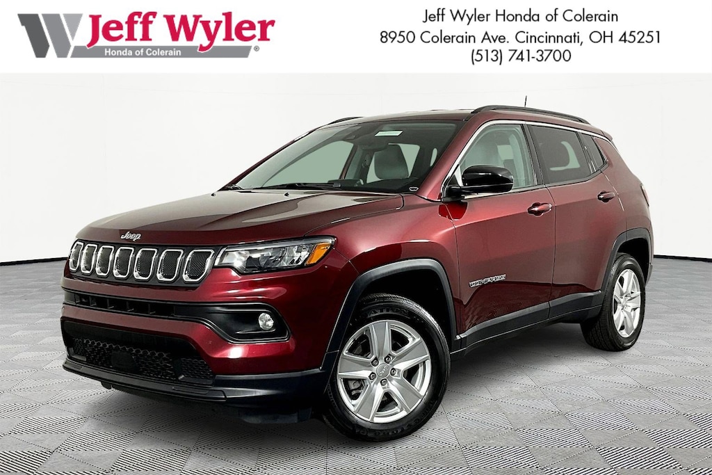 Jeff Wyler Honda of Colerain is very proud to offer this outstanding 2022 Jeep Compass Latitude in Velvet Red Pearlcoat. Well equipped with: Convenience Group (115V Auxiliary Power Outlet, 2nd Row USB Type A/C Charge Only, Air Conditioning ATC w/Dual Zone Control, All-Season Floor Mats, Auto-Dimming Rear-View Mirror, Foot Activated Open 'N Go Liftgate, Heated Front Seats, Heated Steering Wheel, Humidity Sensor, Leather Wrapped Steering Wheel, Power Adjust 8-Way Driver Seat, Power Liftgate, Remote Start System, Reversible Carpet/Vinyl Cargo Mat, Security Alarm, Universal Garage Door Opener, Vehicle Information Center, and Windshield Wiper De-Icer), Quick Order Package 2GJ, 17" x 7" Painted Aluminum Wheels, 3.73 Axle Ratio, 4-Wheel Disc Brakes, 6 Speakers, ABS brakes, Air Conditioning, Alloy wheels, AM/FM radio: SiriusXM, Anti-whiplash front head restraints, Auto High-beam Headlights, Brake assist, Bumpers: body-color, Compass, Delay-off headlights, Driver door bin, Driver vanity mirror, Dual front impact airbags, Dual front side impact airbags, Electronic Stability Control, Emergency communication system: SiriusXM Guardian, Four wheel independent suspension, Front anti-roll bar, Front Bucket Seats, Front Center Armrest w/Storage, Front fog lights, Front License Plate Bracket, Front reading lights, Fully automatic headlights, Heated door mirrors, Illuminated entry, Knee airbag, Leather Shift Knob, Low tire pressure warning, Occupant sensing airbag, Outside temperature display, Overhead airbag, Overhead console, Panic alarm, ParkView Rear Back-Up Camera, Passenger door bin, Passenger vanity mirror, Power door mirrors, Power steering, Power windows, Premium Cloth/Vinyl Bucket Seats, Radio: Uconnect 5 w/10.1" Display, Radio: Uconnect 5 w/8.4" Display (DISC), Rear anti-roll bar, Rear seat center armrest, Rear window defroster, Rear window wiper, Remote keyless entry, Roof rack: rails only, Speed control, Split folding rear seat, Spoiler, Steering wheel mounted audio controls, Tachometer, Telescoping steering wheel, Tilt steering wheel, Traction control, Trip computer, and Variably intermittent wipers.