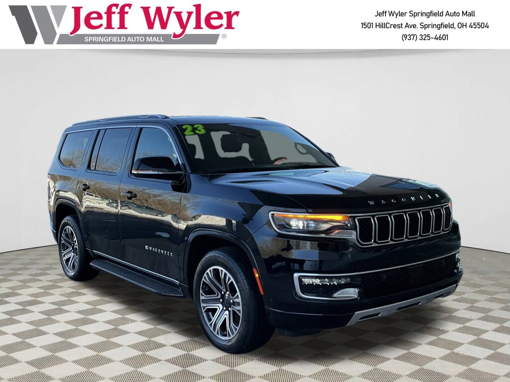 Jeff Wyler Springfield Auto Mall is pleased to offer this good-looking 2023 Jeep Wagoneer Series II in Diamond Black Crystal Pearlcoat. Well equipped with: Quick Order Package 25J, 10 Speakers, 3.55 Rear Axle Ratio, 3rd row seats: bench, 4-Wheel Disc Brakes, ABS brakes, Adjustable pedals, Air Conditioning, Alloy wheels, AM/FM radio: SiriusXM with 360L, Anti-whiplash front head restraints, Audio memory, Auto-dimming door mirrors, Auto-dimming Rear-View mirror, Auto-leveling suspension, Automatic temperature control, Brake assist, Bumpers: body-color, Compass, Delay-off headlights, Driver door bin, Driver vanity mirror, Driver's Seat Mounted Armrest, Dual front impact airbags, Dual front side impact airbags, Electronic Stability Control, Emergency communication system: Automatic SOS Call, Exterior Parking Camera Rear, Four wheel independent suspension, Front anti-roll bar, Front Bucket Seats, Front Center Armrest w/Storage, Front dual zone A/C, Front fog lights, Front reading lights, Fully automatic headlights, Garage door transmitter, Genuine wood console insert, Genuine wood dashboard insert, Genuine wood door panel insert, Heated door mirrors, Heated front seats, Heated steering wheel, Illuminated entry, Knee airbag, Leather Trimmed Bucket Seats, Low tire pressure warning, Memory seat, Navigation System, Normal Duty Suspension, Occupant sensing airbag, Outside temperature display, Overhead airbag, Overhead console, Panic alarm, Passenger door bin, Passenger seat mounted armrest, Passenger vanity mirror, Pedal memory, Power adjustable front head restraints, Power door mirrors, Power driver seat, Power Liftgate, Power passenger seat, Power steering, Power windows, Radio data system, Radio: Uconnect 5 Nav w/10.1" Display, Rain sensing wipers, Rear air conditioning, Rear anti-roll bar, Rear dual zone A/C, Rear reading lights, Rear seat center armrest, Rear window defroster, Rear window wiper, Reclining 3rd row seat, Remote keyless entry, Security system, Speed control, Speed-sensing steering, Speed-Sensitive Wipers, Split folding rear seat, Steering wheel memory, Steering wheel mounted audio controls, Tachometer, Telescoping steering wheel, Tilt steering wheel, Traction control, Trip computer, Turn signal indicator mirrors, Variably intermittent wipers, Ventilated front seats, Voltmeter, and Wheels: 20" x 9.0" Premium 2 Aluminum. Ask about available certifications. Used vehicles 10 years of age or newer with less than 100,000 miles are eligible for the Wyler Assurance Program, but eligible vehicles must pass our reconditioning process and multi-point inspection. Provided the vehicle passes inspection, vehicles will be eligible for the 6 month/6,000 mile limited warranty. The 6 month/6,000 mile limited warranty is NOT available on AS-IS vehicles, wholesale vehicles, lease buyback/pass-thru vehicles or un-inspected vehicles. Note that this program can also apply to vehicles where the remaining factory coverage is less than 6 months or 6,000 miles. Please check the Federal Trade Commission (FTC) Buyers guide on the vehicle for full details as to whether or not warranty coverage may apply. Contact Dealer for additional details. The Wyler Assurance 6 month/6,000 Mile limited warranty ends 6 months from the date of the Retail Purchase Agreement (BUYERS ORDER) or when the vehicle's odometer registers 6,000 additional miles to the mileage listed on the BUYERS ORDER, whichever comes first. Your Deductible - The warranty holder on your contract pays the first $100 of each covered repair.