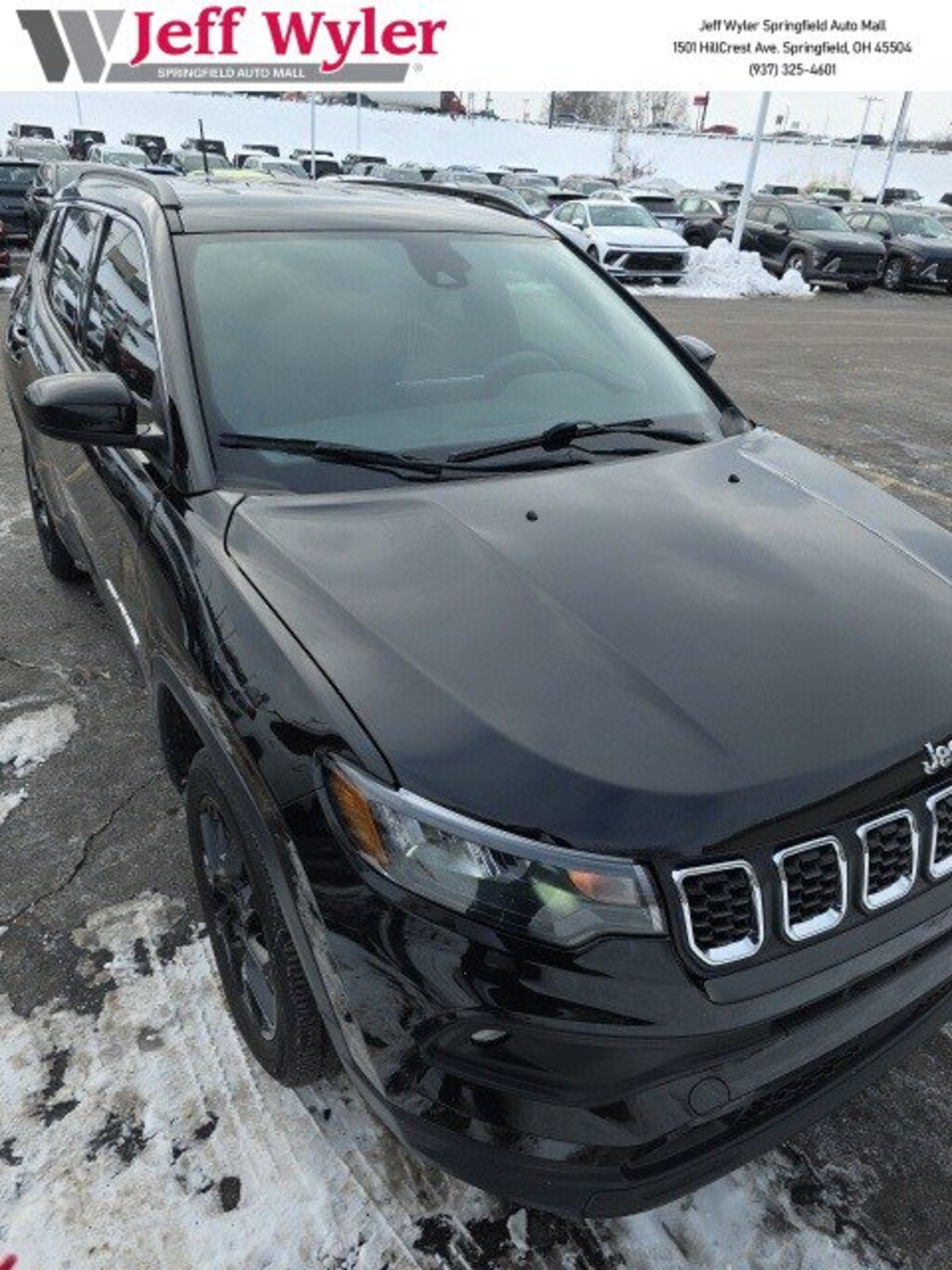 Jeff Wyler Springfield Auto Mall is proud to offer this wonderful 2024 Jeep Compass Latitude Lux in Diamond Black Crystal Pearlcoat. Well equipped with: Quick Order Package 29L, 3.73 Final Drive Ratio, 4-Wheel Disc Brakes, 6 Speakers, ABS brakes, Air Conditioning, Alloy wheels, AM/FM radio: SiriusXM, Auto High-beam Headlights, Brake assist, Bumpers: body-color, Compass, Delay-off headlights, Driver door bin, Driver vanity mirror, Dual front impact airbags, Dual front side impact airbags, Electronic Stability Control, Emergency communication system: Jeep Connect, Four wheel independent suspension, Front anti-roll bar, Front Bucket Seats, Front Center Armrest w/Storage, Front fog lights, Front License Plate Bracket, Front reading lights, Fully automatic headlights, Heated door mirrors, Heated front seats, Heated steering wheel, Illuminated entry, Knee airbag, Leather Shift Knob, Leather steering wheel, Leatherette Seats, Low tire pressure warning, Occupant sensing airbag, Outside temperature display, Overhead airbag, Overhead console, Panic alarm, ParkView Rear Back-Up Camera, Passenger door bin, Passenger vanity mirror, Power door mirrors, Power driver seat, Power steering, Power windows, Radio: Uconnect 5 w/10.1" Display, Rear anti-roll bar, Rear seat center armrest, Rear window defroster, Rear window wiper, Remote keyless entry, Security system, Speed control, Split folding rear seat, Spoiler, Steering wheel mounted audio controls, Tachometer, Telescoping steering wheel, Tilt steering wheel, Traction control, Trip computer, Variably intermittent wipers, and Wheels: 18" x 7" Painted Aluminum. Ask about available certifications. Used vehicles 10 years of age or newer with less than 100,000 miles are eligible for the Wyler Assurance Program, but eligible vehicles must pass our reconditioning process and multi-point inspection. Provided the vehicle passes inspection, vehicles will be eligible for the 6 month/6,000 mile limited warranty. The 6 month/6,000 mile limited warranty is NOT available on AS-IS vehicles, wholesale vehicles, lease buyback/pass-thru vehicles or un-inspected vehicles. Note that this program can also apply to vehicles where the remaining factory coverage is less than 6 months or 6,000 miles. Please check the Federal Trade Commission (FTC) Buyers guide on the vehicle for full details as to whether or not warranty coverage may apply. Contact Dealer for additional details. The Wyler Assurance 6 month/6,000 Mile limited warranty ends 6 months from the date of the Retail Purchase Agreement (BUYERS ORDER) or when the vehicle's odometer registers 6,000 additional miles to the mileage listed on the BUYERS ORDER, whichever comes first. Your Deductible - The warranty holder on your contract pays the first $100 of each covered repair.