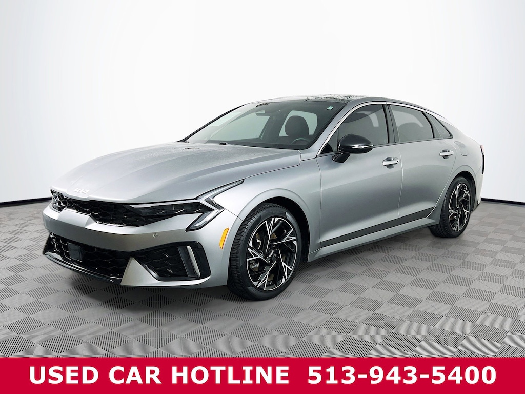 Jeff Wyler Eastgate Auto Mall is excited to offer this charming 2025 Kia K5 GT-Line in Steel Matte Gray. Well equipped with: GT-Line Premium Package (Active Sound Design, Bose Premium Audio, LED Interior Lighting, and Panoramic Sunroof), GT-Line Red Interior Package (SynTex Seat Trim), 4-Wheel Disc Brakes, 6 Speakers, ABS brakes, Air Conditioning, Alloy wheels, AM/FM radio: SiriusXM, Auto High-beam Headlights, Automatic temperature control, Brake assist, Bumpers: body-color, Carpeted Floor Mats, Delay-off headlights, Driver door bin, Driver vanity mirror, Dual front impact airbags, Dual front side impact airbags, Electronic Stability Control, Emergency communication system: Kia Connect (includes 1 year free trial), Four wheel independent suspension, Front anti-roll bar, Front Bucket Seats, Front Center Armrest, Front dual zone A/C, Front fog lights, Front reading lights, Fully automatic headlights, Heated door mirrors, Heated Front Bucket Seats, Heated front seats, Heated steering wheel, Illuminated entry, Knee airbag, Leather Shift Knob, Leather steering wheel, Low tire pressure warning, Navigation System, Occupant sensing airbag, Outside temperature display, Overhead airbag, Overhead console, Panic alarm, Passenger door bin, Passenger vanity mirror, Power door mirrors, Power driver seat, Power steering, Power windows, Radio data system, Radio: AM/FM Audio System, Rear anti-roll bar, Rear seat center armrest, Rear side impact airbag, Rear window defroster, Remote keyless entry, Security system, Speed control, Speed-sensing steering, Split folding rear seat, Sport steering wheel, Steering wheel mounted audio controls, Tachometer, Telescoping steering wheel, Tilt steering wheel, Traction control, Trip computer, Turn signal indicator mirrors, Variably intermittent wipers, and Wheels: 18" x 7.5J Gloss Black Machined Finish Alloy. CARFAX One-Owner. Ask about available certifications. Used vehicles 10 years of age or newer with less than 100,000 miles are eligible for the Wyler Assurance Program, but eligible vehicles must pass our reconditioning process and multi-point inspection. Provided the vehicle passes inspection, vehicles will be eligible for the 6 month/6,000 mile limited warranty. The 6 month/6,000 mile limited warranty is NOT available on AS-IS vehicles, wholesale vehicles, lease buyback/pass-thru vehicles or un-inspected vehicles. Note that this program can also apply to vehicles where the remaining factory coverage is less than 6 months or 6,000 miles. Please check the Federal Trade Commission (FTC) Buyers guide on the vehicle for full details as to whether or not warranty coverage may apply. Contact Dealer for additional details. The Wyler Assurance 6 month/6,000 Mile limited warranty ends 6 months from the date of the Retail Purchase Agreement (BUYERS ORDER) or when the vehicle's odometer registers 6,000 additional miles to the mileage listed on the BUYERS ORDER, whichever comes first. Your Deductible - The warranty holder on your contract pays the first $100 of each covered repair.
