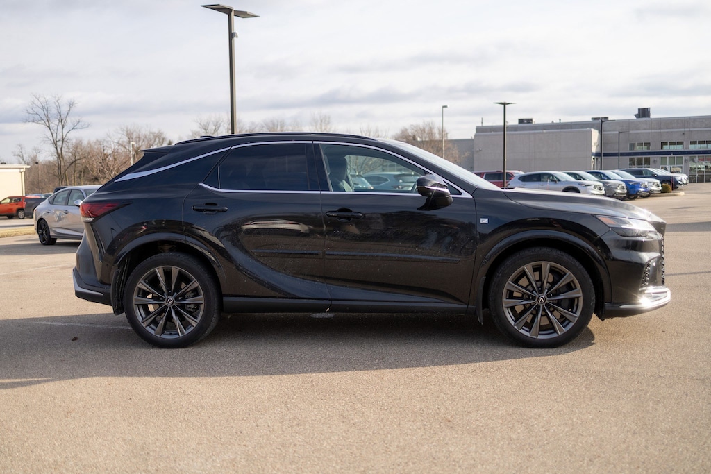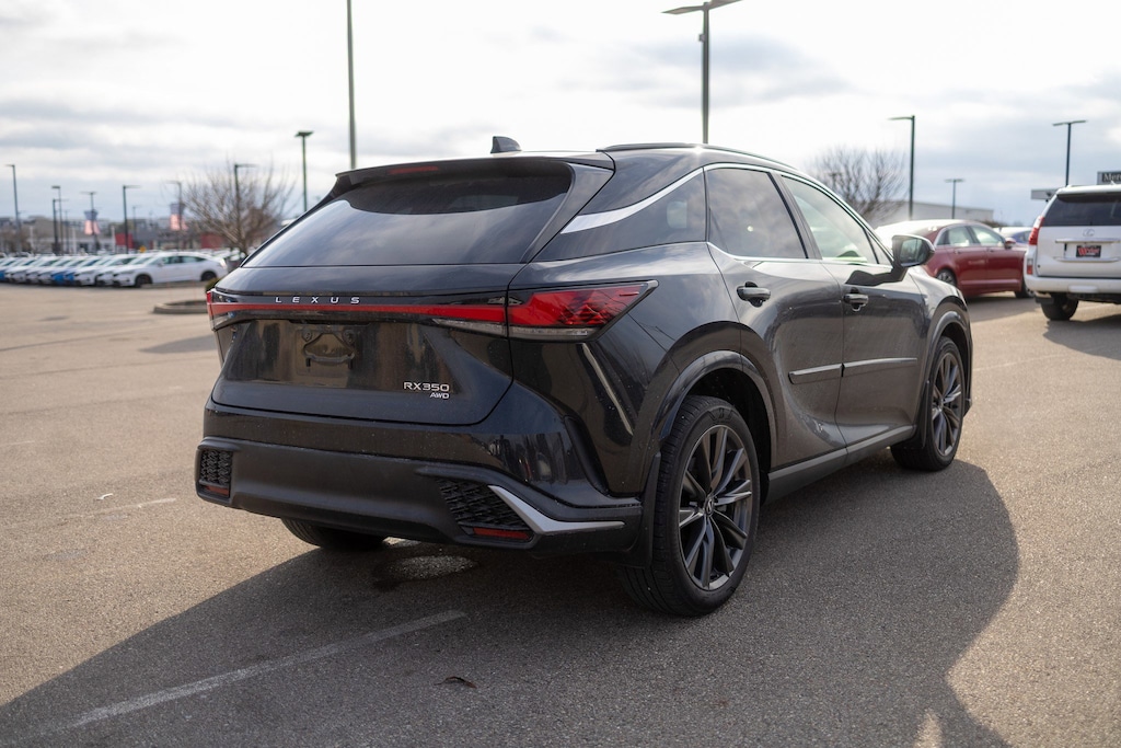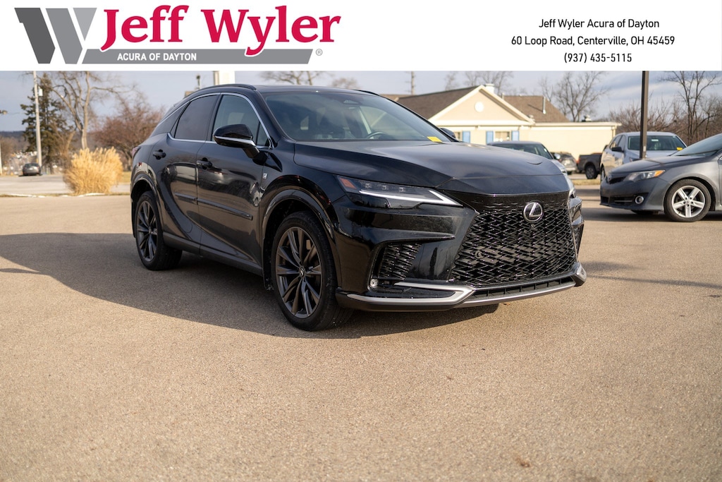 Jeff Wyler Acura of Dayton is very proud to offer this terrific-looking 2023 Lexus RX 350 F Sport Handling in Black. AWD, Black w/Black Open Pore w/Leather Seat Trim, ABS brakes, Active Cruise Control, Alloy wheels, Compass, Electronic Stability Control, Front dual zone A/C, Heated & Ventilated Front Bucket Seats, Heated door mirrors, Heated front seats, Illuminated entry, Low tire pressure warning, Power Liftgate, Power moonroof, Remote keyless entry, Traction control, 12 Speakers, 3.33 Axle Ratio, 4-Wheel Disc Brakes, 8-Way Power Driver & Front Passenger Seat Adjusters, Adaptive suspension, Air Conditioning, AM/FM radio: SiriusXM, Anti-whiplash front head restraints, Auto High-beam Headlights, Auto tilt-away steering wheel, Auto-dimming door mirrors, Auto-dimming Rear-View mirror, Auto-leveling suspension, Automatic temperature control, Brake assist, Bumpers: body-color, Delay-off headlights, Driver door bin, Driver vanity mirror, Dual front impact airbags, Dual front side impact airbags, Emergency communication system: Safety Connect (10-year trial), Exterior Parking Camera Rear, F SPORT NuLuxe Seat Trim, F SPORT White Steering Wheel w/Paddle, Finish Plate Door Inner Garnish, Four wheel independent suspension, Front anti-roll bar, Front Bucket Seats, Front Center Armrest, Front fog lights, Front reading lights, Front Seat Air Conditioner, Fully automatic headlights, Garage door transmitter: HomeLink, Genuine wood console insert, Heads-Up Display, Leather Shift Knob, Memory seat, Multi-Color Illuminated Entry System, Occupant sensing airbag, Outside temperature display, Overhead airbag, Overhead console, Panic alarm, Parking Support Alert/Brake, Passenger door bin, Passenger vanity mirror, Power door mirrors, Power driver seat, Power passenger seat, Power steering, Power windows, Radio data system, Radio: Lexus Interface w/9.8" HD Touchscreen Display, Rain sensing wipers, Rear air conditioning, Rear anti-roll bar, Rear reading lights, Rear seat center armrest, Rear side impact airbag, Rear window defroster, Rear window wiper, Security system, Speed control, Speed-sensing steering, Split folding rear seat, Spoiler, Sport steering wheel, Steering wheel memory, Steering wheel mounted audio controls, Tachometer, Telescoping steering wheel, Tilt steering wheel, Trip computer, Turn signal indicator mirrors, Variably intermittent wipers, Ventilated front seats, Wheels: 21", Wireless Apple CarPlay/Wireless Android Auto, and Wireless Charger Our PRE-OWNED vehicles are put through a rigorous 167- POINT QUALITY ASSURANCE INSPECTION along with an average amount of over $1,400.00 SPENT to recondition each vehicle so we can be sure to deliver you the highest quality vehicle like you deserve! ***ONLINE PRICE DOES NOT INCLUDE WYLER FAMILY FIRST PACKAGE*** CARFAX One-Owner.