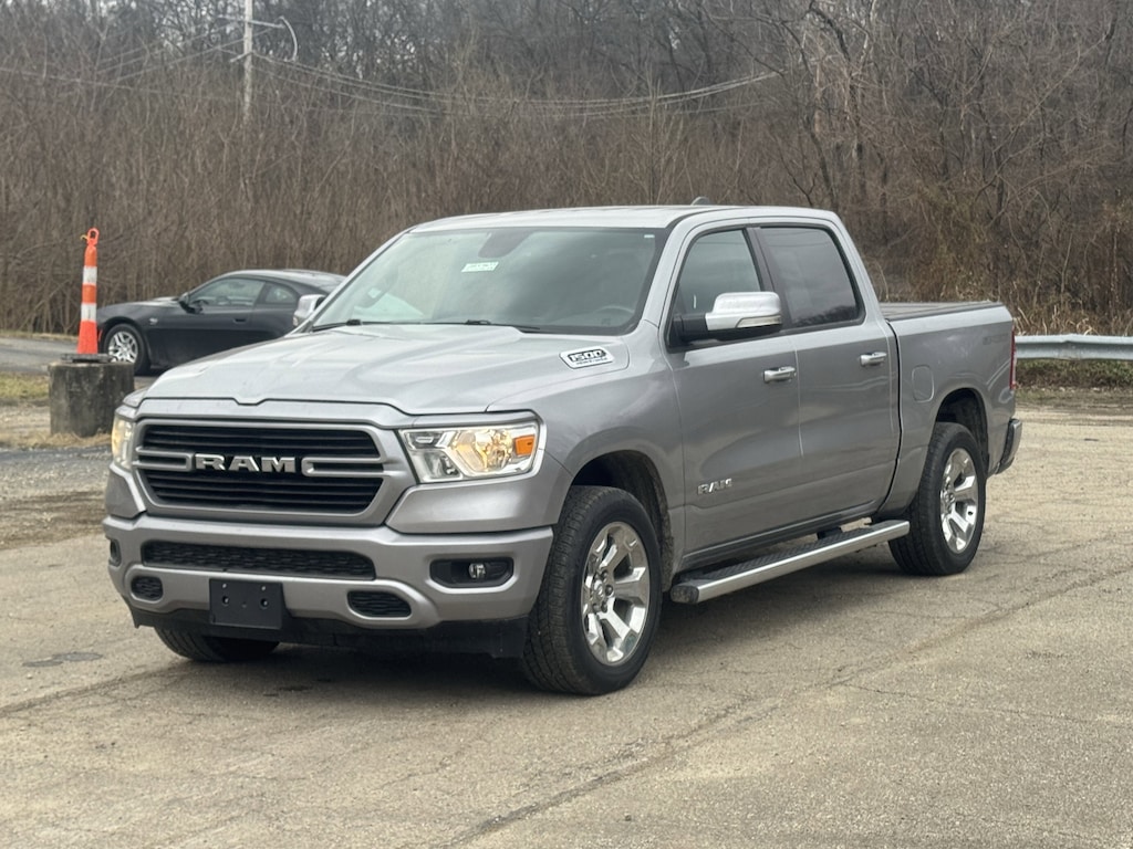Jeff Wyler Chrysler Dodge Jeep of Lawrenceburg is proud to offer this great 2021 Ram 1500 Big Horn/Lone Star in Billet Silver Metallic Clearcoat. Big Horn Level 1 Equipment Group (For More Info, Call 800-643-2112, SiriusXM Radio Service, and SiriusXM Satellite Radio), Quick Order Package 27Z Big Horn, Sport Appearance Package (3 Rear Seat Head Restraints, 4 Way Front Headrests, Deluxe Cloth Bucket Seats, Front Seat Back Map Pockets, and Rear 60/40 Folding Seat), 1-Yr SiriusXM Guardian Trial, 3.21 Rear Axle Ratio, 4-Wheel Disc Brakes, 40/20/40 Split Bench Seat, 48V Belt Starter Generator, 4G LTE Wi-Fi Hot Spot, 5-Year SiriusXM Traffic Service, 5-Year SiriusXM Travel Link Service, 6 Speakers, 8.4" Touchscreen Display, 9 Amplified Speakers w/Subwoofer, ABS brakes, Air Conditioning, Air Conditioning ATC w/Dual Zone Control, Alloy wheels, AM/FM radio, Apple CarPlay, Black Exterior Mirrors, Brake assist, Bumpers: chrome, Cloth Bench Seat, Compass, Delay-off headlights, Disassociated Touchscreen Display, Driver door bin, Dual front impact airbags, Dual front side impact airbags, Electronic Stability Control, For Details, Visit DriveUconnect.com, Front anti-roll bar, Front Center Armrest w/Storage, Front fog lights, Front License Plate Bracket, Front reading lights, Front wheel independent suspension, Fully automatic headlights, Google Android Auto, GPS Antenna Input, GPS Navigation, HD Radio, Heated door mirrors, Illuminated entry, Integrated Center Stack Radio, Integrated Voice Command w/Bluetooth, Leather steering wheel, Low tire pressure warning, MOPAR Front & Rear Rubber Floor Mats, Occupant sensing airbag, Outside temperature display, Overhead airbag, Overhead console, Panic alarm, ParkView Rear Back-Up Camera, Passenger door bin, Passenger vanity mirror, Power door mirrors, Power steering, Power windows, Radio data system, Radio: Uconnect 3 w/5" Display, Radio: Uconnect 4C Nav w/8.4" Display, Rear anti-roll bar, Rear seat center armrest, Rear step bumper, Remote keyless entry, Remote Start System, SiriusXM Traffic Plus, SiriusXM Travel Link, Speed control, Split folding rear seat, Steering wheel mounted audio controls, Tachometer, Telescoping steering wheel, Tilt steering wheel, Traction control, Trailer Brake Control, Trip computer, USB Host Flip, Variably intermittent wipers, Voltmeter, Wheels: 18" x 8" Cast-Aluminum Painted, and Wheels: 20" x 9" Aluminum Chrome Clad (WRK) Our PRE-OWNED vehicles are put through a rigorous 167- POINT QUALITY ASSURANCE INSPECTION along with an average amount of over $1,400.00 SPENT to recondition each vehicle so we can be sure to deliver you the highest quality vehicle like you deserve! ***ONLINE PRICE DOES NOT INCLUDE WYLER FAMILY FIRST PACKAGE*** Stop by 4136 Shelbyville Road to see for yourself, or give us a call @ 502-897-3151 to schedule your test drive! Ask about available certifications.