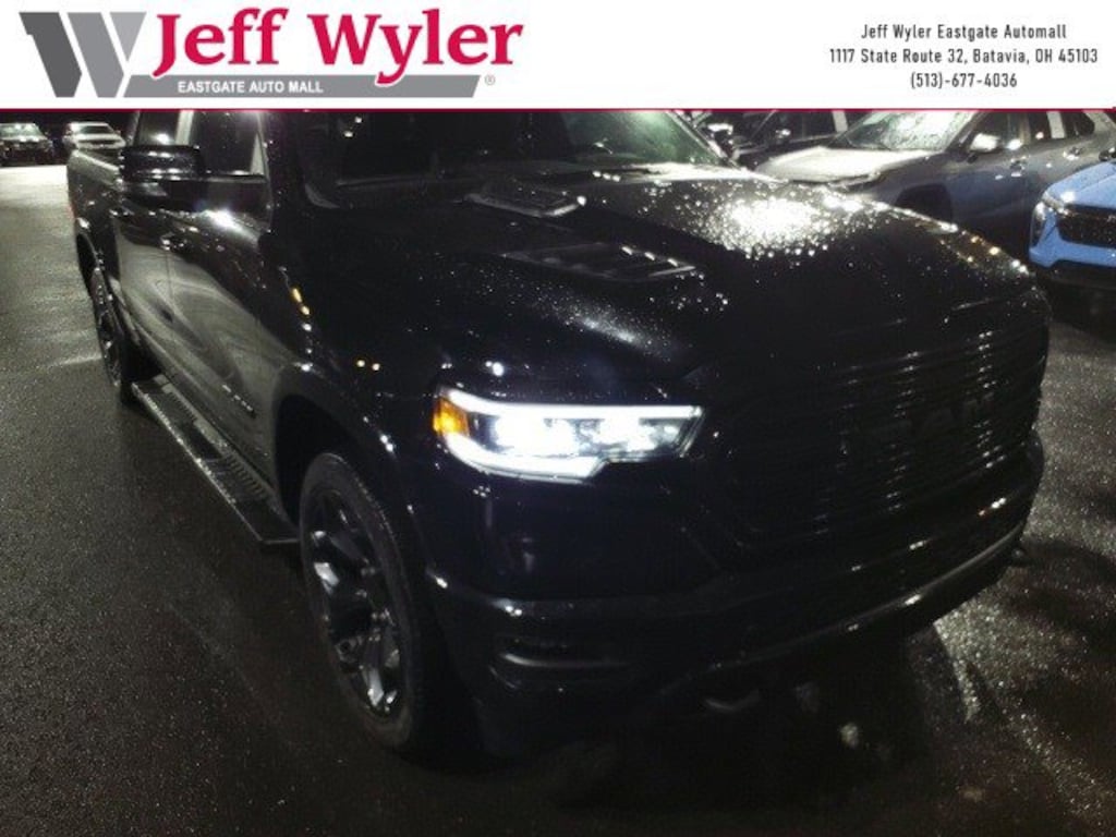 Jeff Wyler Eastgate Auto Mall is proud to offer this wonderful 2024 Ram 1500 Limited in Diamond Black Crystal Pearlcoat. Well equipped with: Night Edition (Accent Color Door Handles, Accent Color Premium Power Mirrors, Auto-Dimming Exterior Driver Mirror, Black Day Light Opening Moldings, Black Exterior Truck Badging, Black Grille Surround Texture 7 Black, Black Headlamp Bezels, Black Painted Exterior Mirrors Caps, Body Color Front Bumper, Body Color Rear Bumper w/Step Pads, Convex Wide-Angle Exterior Mirror Insert, Dual Exhaust w/Black Tips, Exterior Mirrors Courtesy Lamps, Exterior Mirrors w/Heating Element, Exterior Mirrors w/Memory, Exterior Mirrors w/Supplemental Signals, harman/kardon 19 Speaker Premium Sound, Power-Folding Mirrors, RAM Grille Badge - Black, Sport Performance Hood, Tow Hooks, Tri-Fold Tonneau Cover, and Wheels: 22" x 9" Black Aluminum), Quick Order Package 27M Limited, 10 Speakers, 3.21 Rear Axle Ratio, 4 Way Front Headrests, 4-Wheel Disc Brakes, 48V Belt Starter Generator, ABS brakes, Active Noise Control System, Adjustable pedals, Air Conditioning, Alloy wheels, AM/FM radio: SiriusXM with 360L, Apple CarPlay/Android Auto, Audio memory, Auto High-beam Headlights, Auto-dimming door mirrors, Auto-dimming Rear-View mirror, Auto-leveling suspension, Automatic temperature control, Bodyside moldings, Brake assist, Bucket Seats, Bumpers: chrome, Chrome Exterior Mirrors, Compass, Delay-off headlights, Driver door bin, Driver Seat Memory, Driver vanity mirror, Dual front impact airbags, Dual front side impact airbags, Dual Rear Exhaust w/Bright Tips, Electronic Stability Control, Front anti-roll bar, Front Bucket Seats, Front Center Armrest w/Storage, Front dual zone A/C, Front fog lights, Front License Plate Bracket, Front reading lights, Front Seat Back Map Pockets, Front wheel independent suspension, Full Length Premium Floor Console, Fully automatic headlights, Garage door transmitter, Genuine wood console insert, Genuine wood dashboard insert, Genuine wood door panel insert, Heated door mirrors, Heated Front Seats, Heated front seats, Heated rear seats, Heated Second Row Seats, Heated Steering Wheel, Heated steering wheel, Heavy-Duty Engine Cooling, HEMI Badge, Illuminated entry, Leather steering wheel, Low tire pressure warning, Manufacturer's Statement of Origin, Memory seat, Navigation System, Occupant sensing airbag, Outside temperature display, Overhead airbag, Overhead console, Panic alarm, ParkView Rear Back-Up Camera, Passenger door bin, Passenger vanity mirror, Passive Tuned Mass Damper, Pedal memory, Power 4-Way Driver Lumbar Adjust, Power 4-Way Passenger Lumbar Adjust, Power 8-Way Driver & Passenger Seats, Power door mirrors, Power driver seat, Power passenger seat, Power steering, Power windows, Premium Leather Trimmed Bucket Seats, Radio data system, Radio: Uconnect 5 Nav w/12.0" Display, Rain sensing wipers, Rear 60/40 Folding Split Recline Seat, Rear anti-roll bar, Rear seat center armrest, Rear step bumper, Rear window defroster, Remote keyless entry, Security system, Speed control, Split folding rear seat, Steering wheel mounted audio controls, Tachometer, Telescoping steering wheel, Tilt steering wheel, Traction control, Trip computer, Turn signal indicator mirrors, Variably intermittent wipers, Ventilated Front Seats, Ventilated front seats, Ventilated Rear Seats, Ventilated rear seats, Voltmeter, and Wheels: 20" x 9" Aluminum Painted/Polished. Ask about available certifications. Used vehicles 10 years of age or newer with less than 100,000 miles are eligible for the Wyler Assurance Program, but eligible vehicles must pass our reconditioning process and multi-point inspection. Provided the vehicle passes inspection, vehicles will be eligible for the 6 month/6,000 mile limited warranty. The 6 month/6,000 mile limited warranty is NOT available on AS-IS vehicles, wholesale vehicles, lease buyback/pass-thru vehicles or un-inspected vehicles. Note that this program can also apply to vehicles w