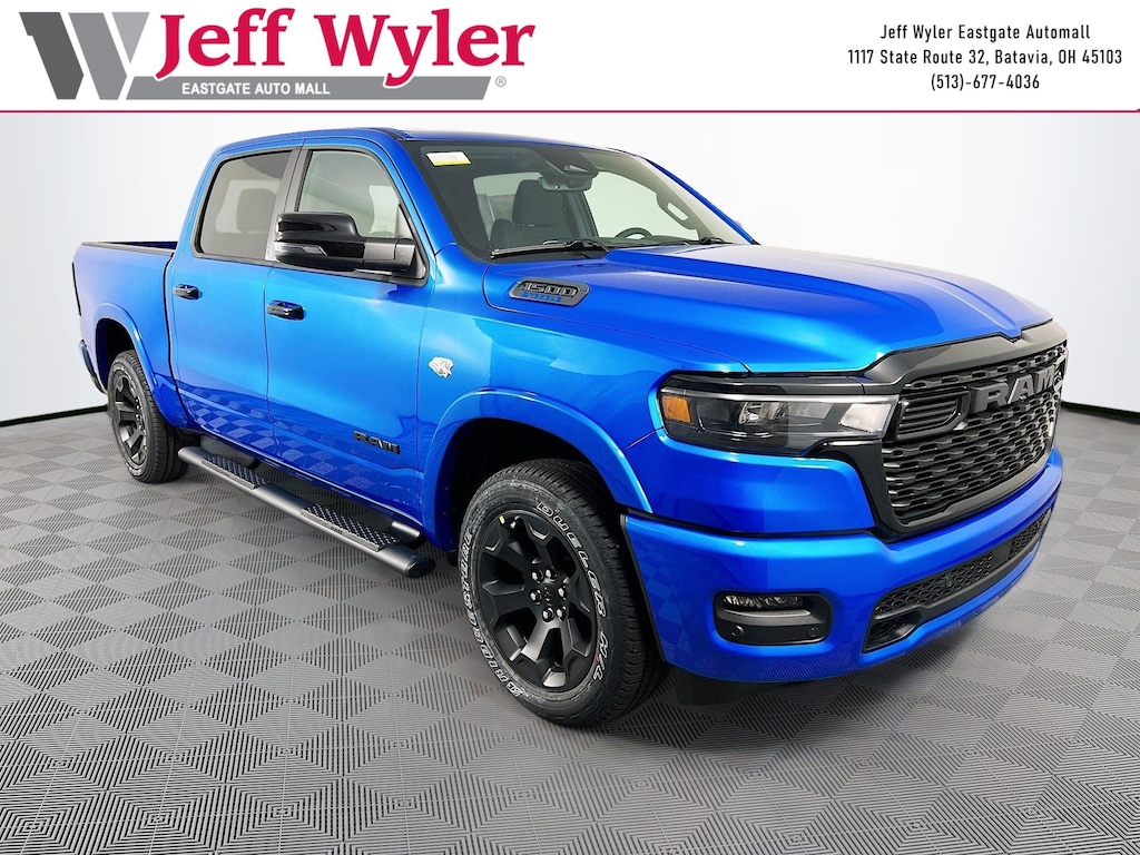Jeff Wyler Eastgate Auto Mall is very proud to offer this handsome 2026 Ram 1500 Big Horn/Lone Star in Hydro Blue Pearlcoat. Well equipped with: Big Horn Level 2 Equipment Group (115V Auxiliary Power Outlet, 115V Auxiliary Rear Power Outlet, 12" Touchscreen Display, 2nd Row in Floor Storage Bins, 3 Rear Seat Head Restraints, 4 Way Front Headrests, 400W Inverter, 4G LTE Wi-Fi Hot Spot, 9 Amplified Speakers with Subwoofer, Air Conditioning ATC with Dual Zone Control, Apple CarPlay, Auto Power-Folding Mirrors, Auto-Dimming Exterior Driver Mirror, Auto-Dimming Rear-View Mirror, Black Exterior Mirrors, Black Premium Power Mirrors, Body Color Fender Flares, Bucket Seats, Center Console Parts Module, Cluster 7.0" TFT Color Display, Configurable Drive Mode, Connected Travel and Traffic Services, Connectivity - US/Canada, Convex Wide-Angle Exterior Mirror Insert, Deluxe Cloth Bucket Seats, Disassociated Touchscreen Display, Exterior Mirrors Courtesy Lamps, Exterior Mirrors with Heating Element, Exterior Mirrors with Supplemental Signals, Front Seat Back Map Pockets, Full Length Floor Console, Global Telematics Box Module, Glove Box Lamp, Google Android Auto, GPS Antenna Input, GPS Navigation, HD Radio, Heated Front Seats, Heated Steering Wheel, Integrated Center Stack Radio, Integrated Voice Command with Bluetooth, Leather Wrapped Steering Wheel, LED Dome Lamp with on/Off Switch, LED Footwell Lighting, Manual Adjust 4-Way Front Passenger Seat, Media Hub with 2 Charge Only USBs, Overhead LED Lamps, Power 2-Way Driver Lumbar Adjust, Power Adjust 8-Way Driver Seat, Power Adjustable Pedals, Premium Overhead Console, Radio: Uconnect 5 Navigation with 12.0" Display, Rear 60/40 Folding Seat, Rear Center Armrest, Rear Power Sliding Window, Rear Window Defroster, Remote Tailgate Release, Security Alarm, SiriusXM Radio Service, SiriusXM with 360L, Steering Wheel Mounted Audio Controls, Sun Visors with Illuminated Vanity Mirrors, Universal Garage Door Opener, and USB Host Flip), Night Edition (Accent Color Door Handles, Accent Color Premium Power Mirrors, Accent Color Tailgate Handle, Anti-Spin Differential Rear Axle, Black Exterior Truck Badging, Black Headlamp Bezels, Black Interior Accents, Black Painted Exterior Mirrors Caps, Black Tail Lamp Bezels, Body Color Front Bumper, Body Color Rear Bumper with Step Pads, Dual Exhaust with Black Tips, Grille Black Surround Black Mesh, RAM Grille Badge - Black, and Wheels: 20" x 9.0" Aluminum Painted Clad), Quick Order Package 27Z Big Horn, 4-Wheel Disc Brakes, 48V Belt Starter Generator, 6 Speakers, ABS brakes, Air Conditioning, Alloy wheels, AM/FM radio, Apple CarPlay/Android Auto, Auto High-beam Headlights, Brake assist, Bumpers: chrome, Cloth Bucket Seats, Cluster 12" TFT Color Display, Compass, Delay-off headlights, Driver door bin, Dual front impact airbags, Dual front side impact airbags, Electronic Stability Control, Front anti-roll bar, Front Bucket Seats, Front Center Armrest w/Storage, Front fog lights, Front License Plate Bracket, Front reading lights, Front wheel independent suspension, Fully automatic headlights, Heated door mirrors, Illuminated entry, Low tire pressure warning, Manual Adjust 4-Way Driver Seat, Manual Folding Exterior Mirrors, MOPAR Front and Rear Rubber Floor Mats, Occupant sensing airbag, Outside temperature display, Overhead airbag, Overhead console, Panic alarm, ParkView Rear Back-Up Camera, Passenger door bin, Passenger vanity mirror, Power door mirrors, Power steering, Power windows, Radio data system, Radio: Uconnect 5 W with 8.4" Display, RAM Grille Badge - Chrome, Rear anti-roll bar, Rear step bumper, Remote keyless entry, Speed control, Supplier Part Tracking (J-1), Tachometer, Telescoping steering wheel, Tilt steering wheel, Traction control, Trailer Brake Control, Trip computer, Variably intermittent wipers, and Voltmeter. Clean CARFAX. Ask about available certifications. Used vehicles 10 years of age or newer with less than 100,000 miles are eligible for the W