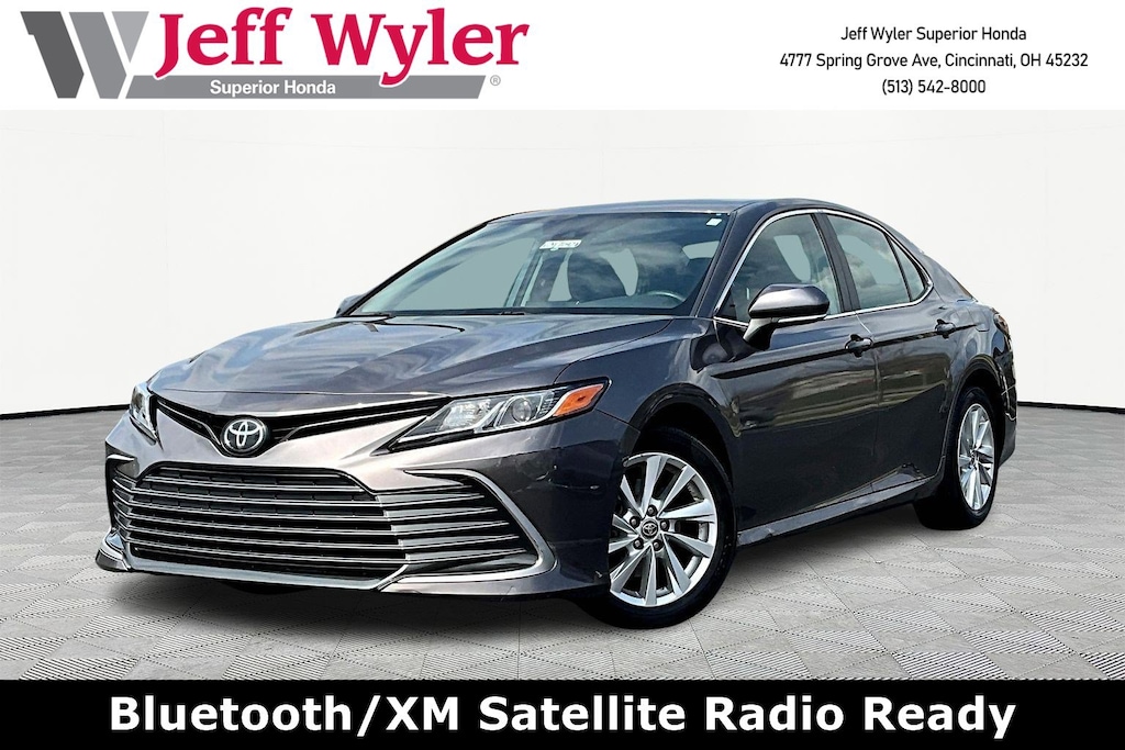 Jeff Wyler Superior Honda is honored to offer this outstanding 2023 Toyota Camry LE in Cavalry Blue. BLUETOOTH, SERVICE RECORDS AVAILABLE, REMAINDER OF FACTORY WARRANTY, and BOUGHT, SERVICED AND TRADED AT SUPERIOR Camry LE, 4D Sedan, 2.5L I4 DOHC 16V, 8-Speed Automatic, FWD, Cavalry Blue, Black Cloth, 4-Wheel Disc Brakes, 6 Speakers, 7.5J x 17" Alloy Wheels, ABS brakes, Air Conditioning, Alloy wheels, AM/FM radio: SiriusXM, Apple CarPlay/Android Auto, Auto High-beam Headlights, Automatic temperature control, Brake assist, Bumpers: body-color, Delay-off headlights, Driver door bin, Driver vanity mirror, Dual front impact airbags, Dual front side impact airbags, Electronic Stability Control, Emergency communication system: Safety Connect (1-year trial), Exterior Parking Cameras, Fabric Seat Trim, Four wheel independent suspension, Front anti-roll bar, Front Bucket Seats, Front Center Armrest, Front dual zone A/C, Front reading lights, Fully automatic headlights, Illuminated entry, Knee airbag, Low tire pressure warning, Occupant sensing airbag, Outside temperature display, Overhead airbag, Overhead console, Panic alarm, Passenger door bin, Passenger vanity mirror, Power door mirrors, Power driver seat, Power steering, Power windows, Radio data system, Radio: Audio, Rear anti-roll bar, Rear seat center armrest, Rear side impact airbag, Rear window defroster, Remote keyless entry, Security system, Speed control, Speed-sensing steering, Split folding rear seat, Steering wheel mounted audio controls, Tachometer, Telescoping steering wheel, Tilt steering wheel, Traction control, Trip computer, and Variably intermittent wipers Our PRE-OWNED vehicles are put through a rigorous 167- POINT QUALITY ASSURANCE INSPECTION along with an average amount of over $1,400.00 SPENT to recondition each vehicle so we can be sure to deliver you the highest quality vehicle like you deserve! ***ONLINE PRICE DOES NOT INCLUDE WYLER FAMILY FIRST PACKAGE*** Stop by 4777 Spring Grove Ave. Road to see for yourself, or give us a call @ 283-209-1858 to schedule your test drive!Vehicle pricing includes all offers and incentives. Due to limited inventory, offers and pricing are all subject to change. Tax, Title, Tags and $387 doc fees are not included in vehicle price shown and must be paid by the purchaser. Doc fees vary by location. Financing w/approved credit. Mileage est. Based on current EPA estimates reflecting new EPA methods beginning w/ 2008 models. For comparison only. Do not compare to pre 2008 models. Actual mileage may vary based on how you drive and maintain your vehicle. Information on this site includes 3rd party data believed to be reliable, subject to change without notice. Jeff Wyler reserves the right to correct any errors and/or omissions in the compilation or presentation of this data and makes no representations express or implied to any prospective purchaser as to the vehicle's condition, specifications, history, equipment or equipment function, price or warranties. This vehicle may be subject to an open recall that has not been repaired. Please consult safercar.gov for more information on the current status. It is the responsibility of purchaser to confirm any data prior to purchase. Other than MSRP, all offers only apply to this vehicle and are subject to change. Vehicle prices are subject to change and all vehicles are subject to prior sale and may not be available when you are ready to purchase. Prices listed on any other website may not be accepted. Dealership advertises the sale of vehicles through a number of different channels and cannot always control when they are updated. Wyler? and Jeff Wyler? are registered trademarks of the Jeff Wyler Automotive Family, Inc.